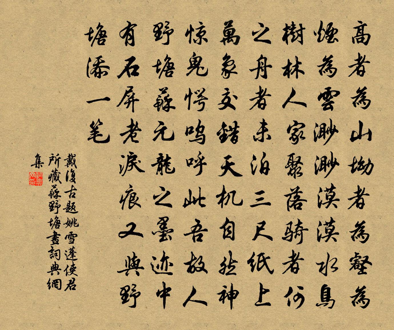 戴復古題姚雪蓬使君所藏蘇野塘畫書法欣賞