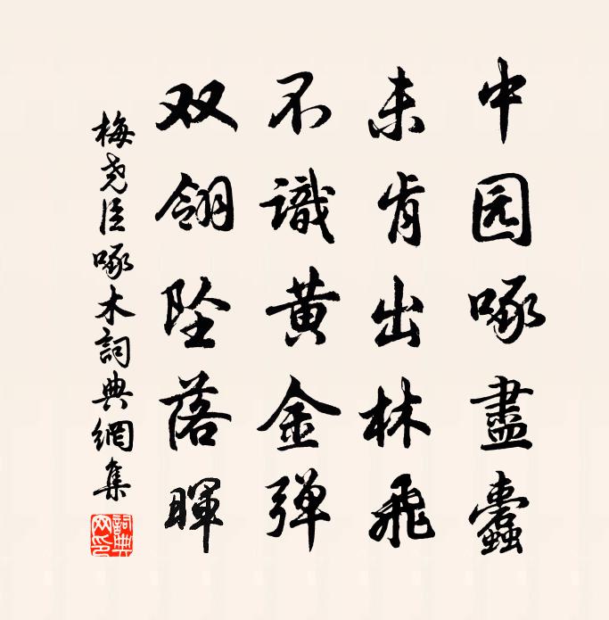 詩詞名句歷史字典書法欣賞書法字典國語詞典說文解字康熙字典古漢語字典標 題 作 者 詩 句 啄木作者:梅堯臣 朝代:宋代啄木原文中園啄盡蠹,未肯出林飛。不識黃金彈,雙翎墜落暉。詩詞問答問:啄木的作者是誰?答:梅堯臣問:啄木寫於哪個朝代?答:宋代問:梅堯臣的名句有哪些?答:梅堯臣名句大全梅堯臣啄木書法欣賞啄木書法作品詩詞推薦送恩平潛使君還里二首李昴英〔宋代〕五載南州屈重名,活人一段是歸程。兩州曾喚兩蘇起,孤節要師孤竹清。合有峰車催赴闕,不應畫戟又專城。閒身依韻和酬王明遠見寄強至〔宋代〕一日論交坐席間,肯平壯氣就衰顏。篇章漫欲窺滄海,道誼從來仰泰山。白日聲名君籍籍,青雲意緒我斑斑。元戎越溪村居戴叔倫〔唐代〕年來橈客寄禪扉,多話貧居在翠微。黃雀數聲催柳變,清溪一路踏花歸。空林野寺經過少,落日深山伴侶稀。負米寄畢叔文二首趙蕃〔宋代〕悶甚長須酒破除,酒能作病又何如。故人慾問春來趣,多病還於酒醆疏。寄賀周子充除左相留正除右相王謙仲除參政趙蕃〔宋代〕淳熙十六年,正月十九日。雪余雨更作,有客方抱疾。忽傳底處書,昏暮叩蓬蓽。問之何許人,乃是吾家侄。書中雜詠一百首盧杞劉克莊〔宋代〕僭偽蟠宮闕,忠賢血賊庭。相君無喜慍,面色只藍青。新暑追涼楊萬里〔宋代〕去歲沖炎橫大江,今年度暑臥筠陽。滿園無數好亭子,一夏不知何許涼。待等老夫親勘當,更招幽鳥細商量。朝慵過江外感懷陳襄〔宋代〕江水無情含野煙,江風還似舊時天。先生隱去思成死,今日重來十六年。邊思楊衡〔唐代〕蘇武節旄盡,李陵音信稀。梅當隴上發,人向隴頭歸。次景琳錄事贈別韻范成大〔宋代〕放船鳴櫓便秦吳,送別空煩長者車。宿霧鎖山常冪冪,斷雲將雨忽疏疏。高城五嶺花深處,短棹三江木落初。賴得和君俞偶成韓維〔宋代〕竊比淮陽臥,幸非莊舄吟。政余無異事,物外得同心。遇興傾浮蟻,投閒作戲禽。世間並出世,於我兩沉沉。偈頌六十首釋曇華〔宋代〕晴蜓許是好晴蜓,飛來飛去不曾停。被我摘卻兩邊翼,恰似一枚大鐵釘。群玉五詠百花洲李彌遜〔宋代〕芳洲面林薄,山響疏泉落。小綠綴肥梅,疏青隕驚籜。周遭不盈丈,思與江湖廓。幽人百虛空,得立聽鳴壑。物我次韻仁近客興二首方回〔宋代〕閱世紛如起滅漚,可須金羽較沈浮。自知人老宜堅坐,更為春寒倦薄游。羌蹇尚能喔楚些,儀鄰不復夢唐樓。載書江村道中書觸目陸游〔宋代〕短籬曲曲對開門,修竹陰陰不見村。別浦回潮魚滬密,孤舟春近雁沙溫。路逢行客時交轡,店賣新醅一舉樽。忽過別達觀文鑒二大士梅堯臣〔宋代〕雲衲山中來,畫橈江上發。何日到山中,山花應未歇。和高子文秋興宇文虛中〔金代〕沙碧平猶漲,霜紅粉已多。駒年驚過隙,鳧影倦隨波。散步雙扶老,棲身一養和。羞看使者節,甘荷牧人蓑。李萬州輓詩項安世〔宋代〕靈輀朝出祖,屬綍淚爭探。慕子啼玄草,慈親哭彩衣。敬齋收秩秩,退國物菲菲。華屋生存處,千年遂不歸。又用韻答何上舍徐元傑〔宋代〕臘雪多為瑞,豐穰隔歲知。林巒銀劒戟,苑囿玉壺池。映幾孫書飽,臥冰祥母飢。疾風看正色,餘事付清詩。送臨江軍監軍李太博梅堯臣〔宋代〕三江卑濕地,北客宦遊稀。霧氣多成雨,雲蒸易損衣。白醪燒瓮美,黃雀下田肥。未辨殊方語,山歌半是非。名句推薦寒日蕭蕭上瑣窗,梧桐應恨夜來霜。李清照《鷓鴣天·寒日蕭蕭上瑣窗》 且看欲盡花經眼,莫厭傷多酒入唇。杜甫《曲江二首》 綺席象床寒玉枕,美人何處醉黃花。汪元量《望江南·幽州九日》 送數聲驚雁,下離煙水,嘹唳度寒雲。孔夷《南浦·旅懷》 淮水悠悠。萬頃煙波萬頃愁。淮上女《減字木蘭花·淮山隱隱》 舊曲梅花唱,新正柏酒傳。孟浩然《歲除夜會樂城張少府宅》 春到南樓雪盡。驚動燈期花信。万俟詠《昭君怨·春到南樓雪盡》 窮冬烈風,大雪深數尺,足膚皸裂而不知。宋濂《送東陽馬生序》 榮非己莫恃,禍惟他勿縱。來俊臣《羅織經·瓜蔓卷第十二》 吾於天下,無去也,無就也,惟道之從。王通《中說·卷二·天地篇》