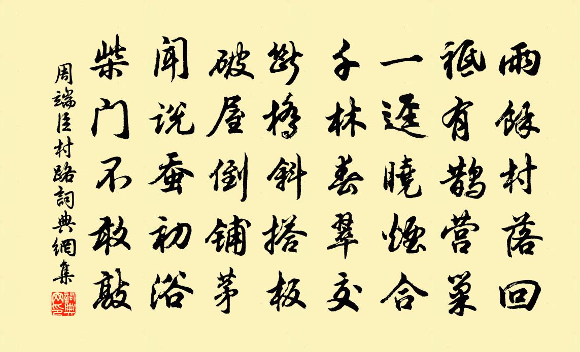 詩詞名句歷史字典書法欣賞書法字典國語詞典說文解字康熙字典古漢語字典標 題 作 者 詩 句 村路作者:周端臣 朝代:宋代村路原文雨餘村落回,祗有鵲營巢。一逕曉煙合,千林春翠交。斷橋斜搭板,破屋倒鋪茅。聞說蠶初浴,柴門不敢敲。詩詞問答問:村路的作者是誰?答:周端臣問:村路寫於哪個朝代?答:宋代周端臣村路書法欣賞村路書法作品詩詞推薦玉樓春 贈磻溪張先生馬鈺〔元代〕元陽烹鍊金光闕。不使暗魔來盜竊。常持清淨有功能,永結神丹無漏泄。閒心一片如冰雪。自有長生無夜月。蓋因詠雪吳均〔南北朝〕微風搖庭樹,細雪下簾隙。縈空如霧轉,凝階似花積。不見楊柳春,徒見桂枝白。零淚無人道,相思空何益。游雲光寺李提舉領客將至留二小詩周必大〔宋代〕作者正七人,飲中空八仙。長齋詎容醉,晉也合逃禪。俞通判輓詞樓鑰〔宋代〕強仕賦歸去,頻年亦漫行。宦情雖淡泊,官事極精明。贊畫王公幕,監州亞父城。佳兒守遺訓,清白勝金籯。滿庭芳 案此下原有滿庭芳真鐵牛兒一首,據佚名〔宋代〕二氣旋還,三宮升降,往來於數無窮。透關神水,鉛汞過三峰。返復周流八脈,戊己煉、陰虎陽龍。凝精處,金花端午帖子太上皇帝閣周必大〔宋代〕抱朴傳方定不虛,日中試覓小蟾蜍。君王萬歲從今數,看汝多年頷下書。題天柱峰白居易〔唐代〕太微星斗拱瓊宮,聖祖琳宮鎮九垓。天柱一峰擎日月,洞門千仞鎖雲雷。玉光白橘相爭秀,金翠佳蓮蕊鬬開。時訪漫興九首方回〔宋代〕枕上半醒中酒病,樓前時過賣花聲。千門萬戶俱更換,惟此依稀舊太平。再和村邊解嘲鄭清之〔宋代〕閒身惟向靜中便,莫景侵尋絳縣年。失解真精昏默默,且觀玄牝息綿綿。溫柔鄉裹誰能老,冷澹勝涯別有天。笑撫送關都官致仕陳襄〔宋代〕庶民之耋,職自為愚。君子之耋,其德有濡。旅力不愆,曷雲其劬。宣州送判官趙嘏〔唐代〕來時健筆佐嫖姚,去折槐花度野橋。誰見尊前此惆悵,一聲歌盡路迢迢。題棺木朱貞白〔宋代〕久久終須要,而今未要君。有時閒憶著,大是要知聞。補和王深甫潁川西湖四篇宜遠橋蘇頌〔宋代〕溪流去無窮,路遠更難盡。信步到橋邊,望中千里近。和靖州判官陳子從山水圖十韻重湖汎月魏了翁〔宋代〕水月皆內景,入秋倍清暉。世無善觀者,滔滔吾誰歸。長樂舊縣李士會〔宋代〕千古空傳長樂溪,誰知樂極已生悲。淒煙斷礎祝家市,落日荒城柳尹祠。上起何年無信史,中更鉅變有殘碑。青峰感興其二李白〔唐代〕洛浦有宓妃。飄搖雪爭飛。輕雲拂素月。了可見清輝。解佩欲西去。含情詎相違。香塵動羅襪。綠水不沾衣。陳王還成都孫應時〔宋代〕匹馬關山不自憐,歸來巾幾更蕭然。劍門南北等為客,木偶東西聊聽天。未省繁華寬旅思,可將奔走負流年。夜涼新作盆池戲書游九言〔宋代〕瓦盆片石疊青蒼,興入湖山寄小窗。細看纖鱗無限有樂,不妨斗水學西江。和許表民湔江驛四題李新〔宋代〕吹來槐莢細,過去杜鵑悲。慣客久無念,送春閒有詩。危峰釋惟一〔宋代〕似側如欹杳靄間,冰棱劍刃不多爭。可中不是通玄頂,切莫粗心向上行。名句推薦小不忍,則亂大謀。孔子弟子《論語·衛靈公篇》 田夫荷鋤至,相見語依依。王維《渭川田家》 野者上,園者次。陸羽《茶經·一之源》 香聞流水處,影落野人家。道源《早梅》 冬宜密雪,有碎玉聲。王禹偁《黃岡竹樓記》 當年萬里覓封侯。匹馬戍梁州。陸游《訴衷情·當年萬里覓封侯》 箴者,針也,所以攻疾防患,喻針石也。劉勰《文心雕龍·銘箴》 日長籬落無人過,惟有蜻蜓蛺蝶飛。范成大《四時田園雜興·其二》 高齋今夜雨,獨臥武昌城。徐禎卿《在武昌作》 鬢絲日日添白頭,榴錦年年照眼明;殷堯藩《端午日》