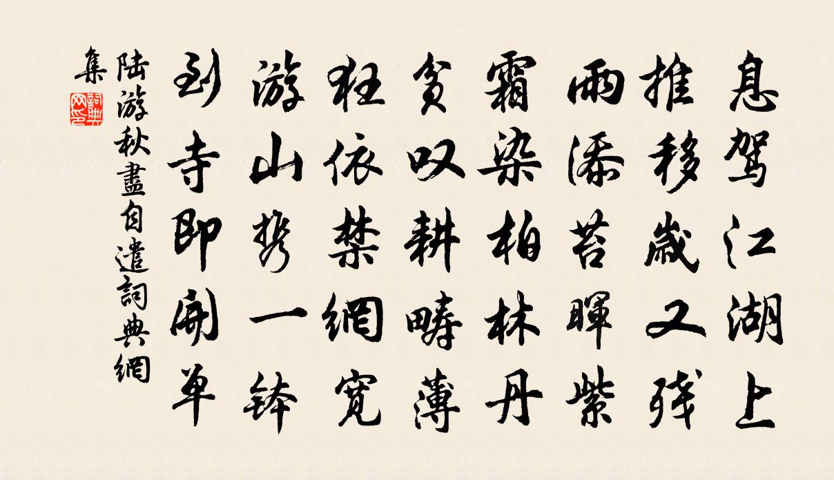 息駕江湖上,推移歲又殘。雨添苔暉紫,霜染柏林丹。