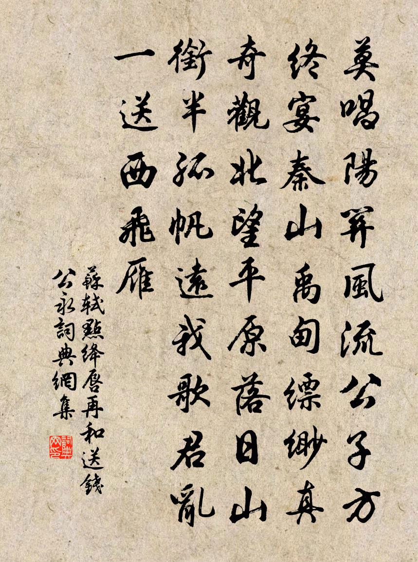 北望平原,落日山銜半。孤帆遠。我歌君亂。一送西飛雁。