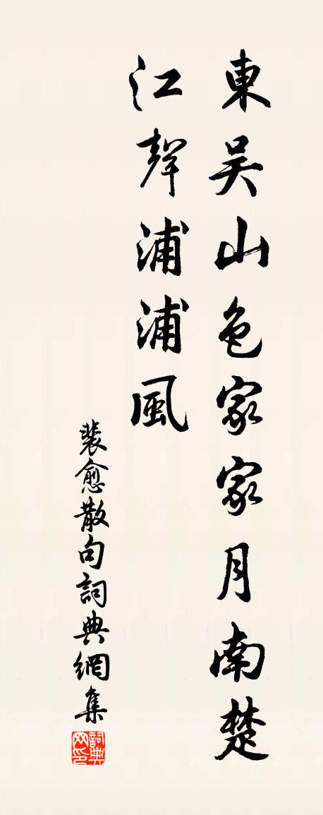 詩詞名句歷史字典書法欣賞書法字典國語詞典說文解字康熙字典古漢語字典標 題 作 者 詩 句 句作者:裴愈 朝代:宋代句原文東吳山色家家月,南楚江聲浦浦風。詩詞問答問:句的作者是誰?答:裴愈問:句寫於哪個朝代?答:宋代裴愈句書法欣賞句書法作品詩詞推薦鵲踏枝仲殊〔宋代〕幾日中元初過復。七葉蓂疏,佳氣生晴書。稱慶源深流福厚。天精儲粹乾星斗。喜人高堂羅燕豆。風弄微涼,簾幕漁人蘇拯〔唐代〕垂竿朝與暮,披蓑臥橫楫。不問清平時,自樂滄波業。長畏不得閒,幾度避游畋。當笑釣台上,逃名名卻傳。贈劉景擢第劉禹錫〔唐代〕湘中才子是劉郎,望在長沙住桂陽。昨日鴻都新上第,五陵年少讓清光。曹村觀落日張鎡〔宋代〕日欲西時暮靄凝,何嘗落向遠山層。分明萬丈青羅幕,遮卻銷金罩里燈。題趙團練畫江乾晚景四絕秦觀〔宋代〕曉浦煙籠樹,春江水拍空。煩君添小艇,畫我作漁翁。偈頌七十八首釋正覺〔宋代〕不可以色見,不可以聲求。風定花猶落,鳥啼山更幽。四衢明自曉,六戶冷如秋。再坐不疑處,杯中弓影浮。偈頌五十一首釋大觀〔宋代〕春風花緩,春日花暖。山鳥花嘲啾,山花爛熳。達磨花壁九年,歸宗拭壞雙眼。諸人還會么,南山粲,白石爛。擁歲除次韻全君玉有懷二首方回〔宋代〕全老忽貽寒夜句,歲闌吾黨久離群。一場噩夢三千字,百載頹齡七八分。孰與挽前軒此士,端能殿後棟斯文。鄉儺上太皇先生章孝標〔唐代〕顥氣貫精神,蒼崖老姓名。煙霞空送景,水木苦無情。劚藥雲根斷,眠花石面平。折鬆開月色,決水放秋聲。顏為遇葉進士貫休〔唐代〕文章擬真宰,儀冠冷如璧。山寺偶相逢,眼青勝山色。氣隆多慷慨,語澹無他力。金繩殘果落,竹閣涼雨滴。自愧石峽山茶盛開方逢辰〔宋代〕冰崖赤骨物俱老,火樹生陽我不孤。鐵葉幾經寒暑戰,丹心不為雪霜枯。托根峽里老居士,加號花中烈丈夫。顏色寄別顏伯奇張弋〔宋代〕情深袂怕分,豈不欲辭君。轉柁方乘曉,思山已隔雲。菊當前路見,雁在半江聞。把盞秋才好,遙憐白鷺群。補樂歌十首。大韶元結〔唐代〕(《大韶》,有虞氏之樂歌也,其義蓋稱舜能紹先聖之德。凡二章,章四句)森森群象兮,日見生成。欲聞朕初兮次黃必先主簿同年贈別韻范成大〔宋代〕山郭官閒得爛游,彌年還往話綢繆。西園剝栗催奴課,東院尋梅勸客留。筆下修鋒千首富,談間和氣兩眉浮。別來句鄒補之〔宋代〕曲江丞相言不售,范陽烽火連京畿。秋來益覺頑健時一出遊意中甚適雜賦五字陸游〔宋代〕寓世年雖往,安心矣已平。每思丹灶冷,宜覺世緣輕。布被雞催曉,蓬窗鵲噪晴。呼兒淨洗硯,書帖寄青城。閣夜杜甫〔唐代〕歲暮陰陽催短景,天涯霜雪霽寒宵。五更鼓角聲悲壯,三峽星河影動搖。野哭幾家聞戰伐,夷歌數處起漁樵。臥龍挽蔡西山先生吳雅〔宋代〕天乎不可問,吾道是耶非。國論成貝錦,台評及布衣。乾坤豈終否,泉壤再生輝。遺恨春陵路,生存不見歸。平山堂杜東〔宋代〕平山堂下水雲重,孤笛淒涼淡月中。不見龍蛇飛素壁,只科狐兔戍離宮。仙翁已逐風流盡,世事俱隨夢幻空。廣武還鮮于蹈夫詩編王之望〔宋代〕百首新詩句句妍,追還江左一千年。春歸池草難專美,冷入江楓稱所傳。一字人知吟不到,八分我喜錄成編。西為名句推薦上苑風煙好,中橋道路平。白居易《洛橋寒食日作十韻》 歡笑情如舊,蕭疏鬢已斑。韋應物《淮上喜會梁川故人 / 淮上喜會梁州故人》 打起黃鶯兒,莫教枝上啼。金昌緒《春怨 / 伊州歌》 青海長雲暗雪山,孤城遙望玉門關。王昌齡《從軍行七首·其四》 修己而不責人,則免於難。左丘明《左傳·閔公·閔公二年》 秋已無多,早是敗荷衰柳。潘希白《大有·九日》 寒氣先侵玉女扉,清光旋透省郎闈。李商隱《對雪二首》 仁人之事者,必務求興天下之利,除天下之害。墨子《墨子·16章 兼愛(下)》 念去來、歲月如流,徘徊久、嘆息愁思盈。周邦彥《綺寮怨·上馬人扶殘醉》 夜發清溪向三峽,思君不見下渝州。李白《峨眉山月歌》