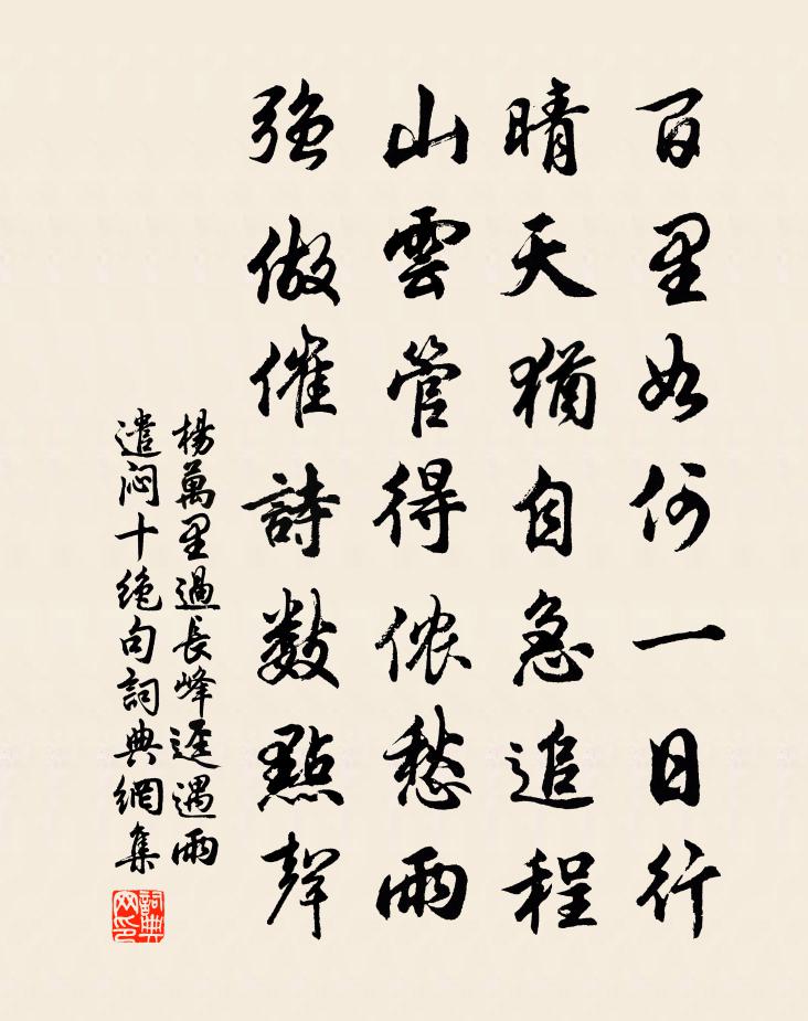 百里如何一日行,晴天猶自急追程。山雲管得儂愁雨,強做催詩數點聲。