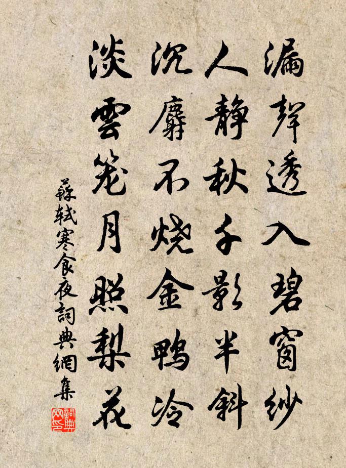 漏聲透入碧窗紗,人靜鞦韆影半斜。沉麝不燒金鴨冷,淡雲籠月照梨花。