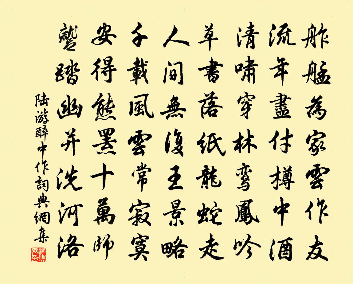 舴艋為家雲作友,流年盡付樽中酒。清嘯穿林鸞鳳吟,草書落紙龍蛇走。