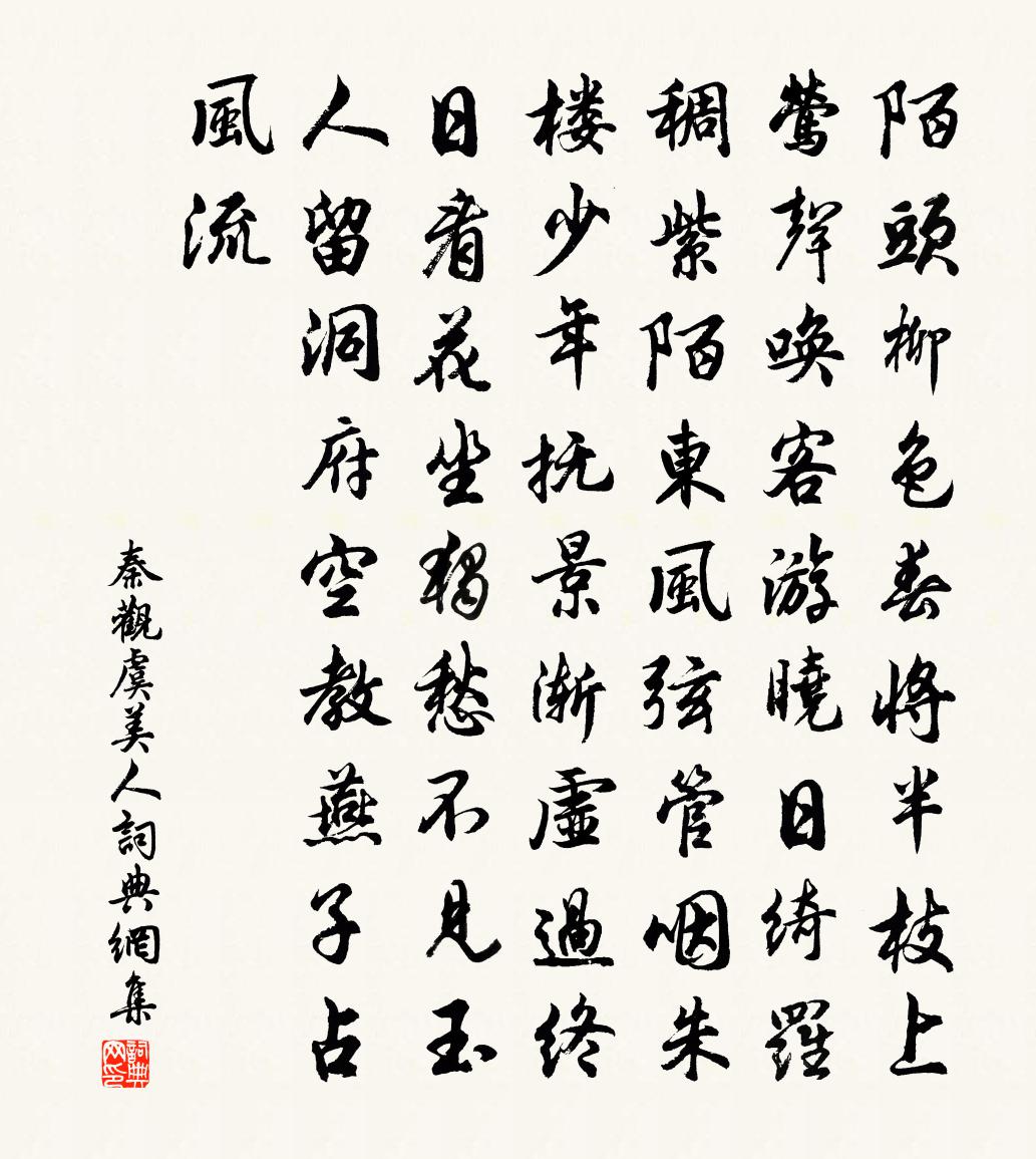 陌頭柳色春將半。枝上鶯聲喚。客游曉日綺羅稠。紫陌東風弦管、咽朱樓。
