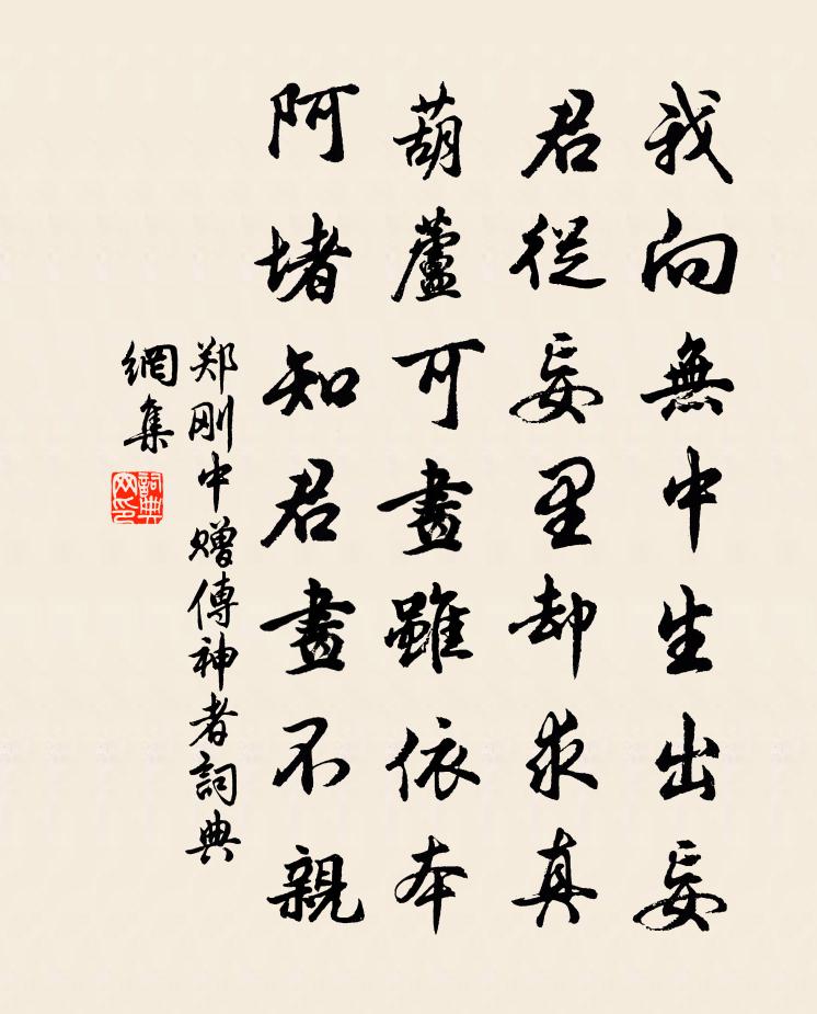 詩詞名句歷史字典書法欣賞書法字典國語詞典說文解字康熙字典古漢語字典標 題 作 者 詩 句 贈傳神者作者:鄭剛中 朝代:宋代贈傳神者原文我向無中生出妄,君從妄里卻求真。葫蘆可畫雖依本,阿堵知君畫不親。詩詞問答問:贈傳神者的作者是誰?答:鄭剛中問:贈傳神者寫於哪個朝代?答:宋代鄭剛中贈傳神者書法欣賞贈傳神者書法作品詩詞推薦摸魚兒(隨湖南安撫趙德修自長沙回至瀂港,值其生日)陳著〔宋代〕碧油幢、一開藩後,便思量早歸去。工夫著緊新城好,風月萬家笙鼓。游宴處。要管領春光,補種花無數。何須更陪王漕右司游東園章甫〔宋代〕晝永花紅困,煙輕草綠齊。緩行金瑣細,爛醉玉東西。棋局觀成敗,河魚入品題。門闌老賓客,勝處謝招攜。夫人閣四首蘇軾〔宋代〕雪消鴛瓦已流澌,風暖犀盤尚鎮帷。縹緲紫簫明月下,璧門桂影夜參差。詠蜘蛛梅堯臣〔宋代〕日結一尺網,知吐幾尺絲。百蟲為爾食,九腹常苦飢。仲舅敷文閣學士汪公輓詞樓鑰〔宋代〕籍甚牢之舅,難追宅相風。惟公能愛我,獨我最知公。潭府書無繼,西州事已空。形容盡心力,庶或慰幽宮。春天吟邵雍〔宋代〕一片春天在眼前,眼前須識好春天。春秋冬夏能無累,雪月風花都一連。能用真腴為事業,豈防他物害暄妍。我生潛溪晚歸二首宋庠〔宋代〕剎剎尋僧駐蓋頻,已聞歸騎趣城闉。岩雲不散溪泉咽,野色幽聲共怨人。寄張守仲思十首陳造〔宋代〕珍蔬解佐盤餐館,妙劑真令病骨輕。鍾乳茈姜皆楚產,薦芹聊致野人誠。占巾子葉簡〔宋代〕近來好裹束,各自競尖新。稱無二三兩,因何號一斤。酬張常吉舒岳祥〔宋代〕憑誰詩寄我,溪水接流瓢。島瘦神空泣,韓豪骨未銷。閒眠重落葉,久坐到歸樵。予說逃名者,何當共寂寥。官滿將見舍弟強至〔宋代〕三歲別吾弟,今歸心始降。從茲得安寢,無夢過重江。預驗鵲音喜,行看雁影雙。西湖猶可泛,酤酒市羊羫。初歸筠莊蘇粹之以詩見貽次韻答之二首李彌遜〔宋代〕它年同上楚江樓,花繞春城小謝州。翻手雨雲人事改,跳丸日月歲光流。霜空暮落能鳴雁,秋水風移不擊舟。偶築石州城武元衡〔唐代〕丈夫心愛橫行,報國知嫌命輕。樓蘭徑百戰,更道戍龍城。錦字竇車騎,胡笳李少卿。生離兩不見,萬古難為情。深灣夜宿王勃〔唐代〕津塗臨巨壑,村宇架危岑。堰絕灘聲隱,風交樹影深。江童暮理楫,山女夜調砧。此時故鄉遠,寧知遊子心。送吳夢大監稅赴潮州圃灣二首王邁〔宋代〕詩禮名家子,錚錚早有聲。右班聊借徑,在計更司征。霜日孤標淨,湖山一共平。圖南九萬里,此去是頭程。雜詩李端〔唐代〕主第辭高飲,石家赴宵會。金谷走車來,玉人騎馬待。思歸宋祁〔宋代〕刻意傷春屬暮樓,江皋歸棹悵夷猶。青蘿怨鶴英山曉,疏笛吟龍臥塢秋。掩泣泥陽思祖廟,長懷彭澤廢先疇。裂繻挽節使少保許應龍〔宋代〕袞衣赤舄我公歸,共傒登庸翊政機。楓禁薦頒天語渥,薤歌我嘆露華晞。真王未復青氈舊,亞保空餘紫誥輝。突兀聞官軍破吉浪戎小而固,慮史氏遺忽,因記為薛能〔唐代〕和吹度穹旻,虛徐接建寅。不辭加一歲,唯喜到三春。燎照雲煙好,幡懸井邑新。禎祥應北極,調燮驗平津。樹欲殘句湖上秋風聚螢苑蘇軾〔宋代〕湖上秋風聚螢苑,門前春浪散花洲。名句推薦北風夜卷赤亭口,一夜天山雪更厚。岑參《天山雪歌送蕭治歸京》 一騎紅塵妃子笑,無人知是荔枝來。杜牧《過華清宮絕句三首》 鳥飛反故鄉兮,狐死必首丘。屈原《九章》 參軍春思亂如雲,白髮題詩愁送春歐陽修《春日西湖寄謝法曹歌》 旅館寒燈獨不眠,客心何事轉悽然。高適《除夜作》 陰晴圓缺都休說,且喜人間好時節。徐有貞《中秋月·中秋月》 無為在歧路,兒女共沾巾。王勃《送杜少府之任蜀州 / 送杜少府之任蜀川》 凡彼禍難也,先者恆凶,後者恆吉。佚名《黃帝四經·十大經·雌雄節》 離離原上草,一歲一枯榮。白居易《草 / 賦得古原草送別》 為人全無好處,欲邀福慶,從何得來?王永彬《圍爐夜話·第一一四則》