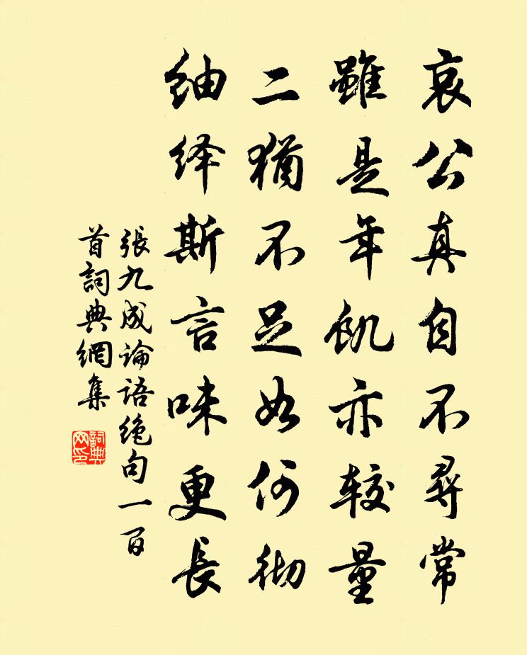 詩詞名句歷史字典書法欣賞書法字典國語詞典說文解字康熙字典古漢語字典標 題 作 者 詩 句 論語絕句一百首作者:張九成 朝代:宋代論語絕句一百首原文哀公真自不尋常,雖是年飢亦較量。二猶不足如何徹,紬繹斯言味更長。詩詞問答問:論語絕句一百首的作者是誰?答:張九成問:論語絕句一百首寫於哪個朝代?答:宋代張九成論語絕句一百首書法欣賞論語絕句一百首書法作品詩詞推薦送張忠州使君八兄二首曾協〔宋代〕東閣如公不挽留,又飄征袖入西州。四方謾說多奇士,千騎才教占上頭。那得長繩縈去棹,不堪淋雨助離愁。長江梁三朝雅樂歌 俊雅 二沈約〔南北朝〕開我八襲。辟我九重。珩佩流響。纓紱有容。袞衣前邁。列辟雲從。義兼東序。事美西雍。分階等肅。異列齊恭。次韻康慶之秋雨喜涼書懷五首方回〔宋代〕少年健如虎,不信發齒落。風雨淒其秋,眾葉失所託。深潛泉自滋,猛鍛石亦鑠。細思陶元亮,大勝王鎮惡。豫章二首劉克莊〔宋代〕交遊回首散如煙,重過洪州隔世然。手種垂楊皆合抱,朱顏安得似當年。使兩浙贈羅隱羅袞〔唐代〕平日時風好涕流,讒書雖盛一名休。寰區嘆屈瞻天問,夷貊聞詩過海求。向夕便思青瑣拜,近年尋伴赤松游。何當浣溪沙·綠柳藏烏靜掩關晏幾道〔宋代〕綠柳藏烏靜掩關。鴨爐香細瑣窗閒。那回分袂月初殘。惜別漫成良夜醉,解愁時有翠箋還。欲尋雙葉寄情難。減字木蘭花黃庭堅〔宋代〕黃金捍撥春風手。簾幕重重音韻透。梅花破萼便回春,似有黃鸝鳴翠柳。曉妝未愜梅添就。玉筍捧杯離鈿袖。會拼水調歌頭(敗荷)劉將孫〔宋代〕搖風猶似旆,傾雨不成盤。西風未禁十日,早作背時看。寂寞六郎秋扇,牽補靈均破屋,風露半襟寒。坐感青年晚和太尉戲贈高陽公上官儀〔唐代〕熏爐御史出神仙,雲鞍羽蓋下芝田。紅塵正起浮橋路,青樓遙敞御溝前。傾城比態芳菲節,絕世相嬌是六年。慣是平江道中潘檉〔宋代〕不載圖書載酒杯,姑蘇台下小徘徊。東風不識人心老,擺柳吹花一併來。酬元郎中同制加朝散大夫書懷見贈白居易〔唐代〕命服雖同黃紙上,官班不共紫垣前。青衫脫早差三日,白髮生遲校九年。曩者定交非勢利,老來同病是詩篇。終身望江南/憶江南廖剛〔宋代〕蓬山曉,龜鶴倚芝庭。雲覆寶熏迷舞鳳,玉扶瓊液薦文星。棠蔭署風清。人盡道,天遣瑞昇平。九萬鵬程才振翼,秋崖先生以紅石見寄吳龍翰〔宋代〕彤霞鑠石玉晶熒,琢出羲之風字形。卻著寒松蒼古下,研煙傳寫相牛經。古征戰於濆〔唐代〕高峰凌青冥,深穴萬丈坑。皇天自山谷,焉得人心平。齊魯足兵甲,燕趙多娉婷。仍聞麗水中,日日黃金生。苟非黃漕祠堂吳泳〔宋代〕古誼寥寥千載間,卻從賓主得窺斑。道同元不分窮達,禮重何妨尚往還。拄杖過橋聲易識,壁紗籠墨句難攀。篝燈楊待制輓詞樓鑰〔宋代〕望重威無怒,仁深勇有餘。百年憂國志,滿篋薦賢書。德政不勝載,才猷示盡攄。佳兒人物似,真可大門閭。偈傾一百三十三首釋法薰〔宋代〕一不成,二不是。建立乖宗,掃除失旨。吳趨行陸機〔魏晉〕楚妃且勿嘆。齊娥且莫謳。四座並清聽。聽我歌吳趨。吳趨自有始。請從閶門起。閶門何峨峨。飛饋跨通波。重欒春雪阻觀梅花兩詩嘲之張鎡〔宋代〕雨聲俄混雪聲乾,混濘林堂一到難。藉使玉肌無凍粟,可能獨自過春寒。自湘赴廣道間雜詠蟠松李曾伯〔宋代〕紅紫競芳叢,中蟠一古松。春風自來去,吹不勸蒼龍。名句推薦野橋經雨斷,澗水向田分。劉長卿《碧澗別墅喜皇甫侍御相訪》 寂寂竟何待,朝朝空自歸。孟浩然《留別王侍御維 / 留別王維》 連雨不知春去,一晴方覺夏深。范成大《喜晴》 歸夢寄吳檣。水驛江程去路長。陸游《南鄉子·歸夢寄吳檣》 月照城頭烏半飛,霜淒萬樹風入衣。李頎《琴歌》 綺席象床寒玉枕,美人何處醉黃花。汪元量《望江南·幽州九日》 但將千歲葉,常奉萬年杯。趙彥昭《奉和元日賜群臣柏葉應制》 一字無題外,落葉都愁。張炎《八聲甘州·記玉關踏雪事清游》 性孤高似柏,阿嬌金屋。陸容《滿江紅·詠竹》 不登高山,不知天之高也;不臨深溪,不知地之厚也荀子《荀子·勸學》
