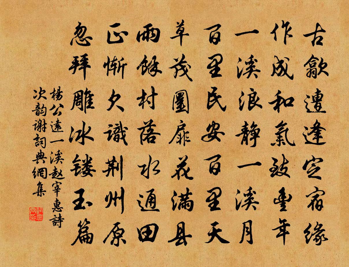 詩詞名句歷史字典書法欣賞書法字典國語詞典說文解字康熙字典古漢語字典標 題 作 者 詩 句 一溪趙宰惠詩次韻謝作者:楊公遠 朝代:宋代一溪趙宰惠詩次韻謝原文古歙遭逢定宿緣,作成和氣致豐年。一溪浪靜一溪月,百里民安百里天。草茂圜扉花滿縣,雨余村落水通田。正慚欠識荊州原,忽拜雕冰鏤玉篇。詩詞問答問:一溪趙宰惠詩次韻謝的作者是誰?答:楊公遠問:一溪趙宰惠詩次韻謝寫於哪個朝代?答:宋代楊公遠一溪趙宰惠詩次韻謝書法欣賞一溪趙宰惠詩次韻謝書法作品詩詞推薦與諸同僚偶會賦八題邑署獨鶴蘇頌〔宋代〕常賦士衡雲,兼懷惠連雪。庭前聞清唳,天外見寒月。舞愛素琴橫,飢思朝露潔。問爾誰為群,威鳳在丹穴。燕山聞鵑范晞文〔宋代〕燕山三月初三夜,聽得啼鵑第一聲。同是小樓孤燭下,主人熟睡客驚心。洪景伯行縣以不得相見寄詩道意因和其韻吳芾〔宋代〕準擬君行縣,相隨入醉鄉。何知旋旆速,空負倚樓望。室邇嗟人遠,愁多覺夜長。後亭梅正發,誰共賞寒香。脫京口謀人難文天祥〔宋代〕一片歸心似亂雲,逢人時漏話三分。當時若也私謀泄,春夢悠悠郭璞墳。臨江仙 贈石遇仙等王丹桂〔元代〕稽首同途聽教化,休教虛度流年。常生覺照道心堅。包容他過失,整頓自邪偏。分上本無人我相,閒中認正根原。和中玉使君晚秋開天寧節道場黃庭堅〔宋代〕江南江北盡雲沙,車騎東來風旆斜。倒影樓台開紫府,得霜籬落剩黃花。釣溪築野收多士,航海梯山共一家。想見贈王巇王禹偁〔宋代〕舉子竟文賦,風騷委路塵。吾宗多警句,詩道未無人。青眼有誰是,白頭空鑷頻。賈生如再召,為爾指迷津。板子磯張養重〔清代〕荻港東邊板子磯,秋高日見雨霏霏。荒城草長埋金鏃,廢壘沙深臥鐵衣。山上群鴉迎客舞,江邊孤雁背人飛。晚來至鄂期年以饟事不給於詩己亥夏五廿有八日始岳珂〔宋代〕一江漲碧碧於藍,健櫓鳴鵝舳正銜。才似過都空萬馬,又驚倚岸閱千帆。偈頌十九首釋紹曇〔宋代〕五千黃葉止兒啼,不異渝江碧落碑。古篆分明無贗本,具看經眼不難窺。警懦陳淳〔宋代〕顏子之克己,鏌鋣斫空桑。曾子毅於仁,重擔硬脊樑。子路勇有行,勁兵赴敵場。孟呵剛不屈,砥柱立滄浪。嗟哉贈聞人松庵李曾伯〔宋代〕官術猶能手不龜,子之為術亦如之。價增三倍玉麟雇,言訂千金木石詩。鷗鷺尋盟吾自計,鷃鵬輿論界發爾何為。夜行玉笥樵風之間宿龍瑞陸游〔宋代〕野店溪橋供晚餉,吟邊醉里弄春風。馬行缺月黃昏後,鐘下亂山空翠中。名宦不辭成寂寂,歲時惟恨去匆匆。頗聞贈照老李流謙〔宋代〕舊矣聞名熟,欣然識面初。只求一轉語,不用五車書。出屋茶煙密,臨溪樹影疎。地偏吾所愛,庭草不須鋤。出墅初冬劉詵〔元代〕鄰舂五更動,機杼響俱發。薄霜厲曾宇,天西輾孤月。驛馬嘶不已,壁蛩鳴乍歇。故人期不來,山莊多落葉。文章陸游〔宋代〕文章本天成,妙手偶得之,粹然無疵瑕,豈復須人為!君看古彝器,巧拙兩無施。漢最近先秦,固已殊淳漓;胡部太原旅懷呈薛十八侍御齊十二奉禮歐陽詹〔唐代〕前來稱英雋,有食主人魚。後來曰賢才,又受主人車。伊予亦投刺,恩煦胡凋疏。既睹主人面,復見主人書。餬口睡思李覯〔宋代〕俗語不入耳,旅愁還到心。坐多渾易厭,夢好欲重尋。暴雨撩蓬響,殘陽過嶺陰。回看奔競苦,此興貴南金。於潛道中賈似道〔宋代〕數家煙火深村里,幾處牛羊落日中。客久不歸心事遠,梧桐葉葉是秋風。憶秦娥·與君別房舜卿〔宋代〕與君別。相思一夜梅花發。梅花發。淒涼南浦,斷橋斜月。盈盈微步凌波襪。東風笑倚天涯闊。天涯闊。一聲羌管名句推薦記得年時,相見畫屏中。謝逸《江神子·杏花村館酒旗風》 別日南鴻才北去,今朝北雁又南飛。魚玄機《閨怨》 來如春夢幾多時?去似朝雲無覓處。白居易《花非花》 寒眼亂空闊,客意不勝秋。楊炎正《水調歌頭·登多景樓》 煢煢孑立,形影相弔。西晉·李密《陳情表》 隔戶楊柳弱裊裊,恰似十五女兒腰。杜甫《絕句漫興九首·其一》 憶共錦衾無半縫,郎似桐花,妾似桐花鳳。王士禎《蝶戀花·和漱玉詞》 白水滿春塘,旅雁每迥翔。沈約《詠湖中雁》 忠臣不借人以力,貞女不假人以色。劉向《列女傳·貞順傳·楚白貞姬》 墜粉飄香,日日喚愁生。盧祖皋《江城子·畫樓簾暮卷新晴》