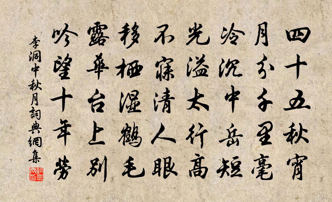 詩詞名句歷史字典書法欣賞書法字典國語詞典說文解字康熙字典古漢語字典標 題 作 者 詩 句 中秋月作者:李洞 朝代:唐代中秋月原文四十五秋宵,月分千里毫。冷沉中嶽短,光溢太行高。不寐清人眼,移棲濕鶴毛。露華台上別,吟望十年勞。詩詞問答問:中秋月的作者是誰?答:李洞問:中秋月寫於哪個朝代?答:唐代問:中秋月是什麼體裁?答:五律李洞中秋月書法欣賞中秋月書法作品注釋全唐詩:卷721-6詩詞推薦郴江百詠並序茶山寺阮閱〔宋代〕莽草寒蘆事不經,八峰深在亂雲層。只因一句鵝湖讖,直至於今有此稱。余試吏初期六十止今遂初原喜而賦之陶夢桂〔宋代〕小兒無力報明時,六十休官早自期。今歲才週花甲子,此身已居菊東籬。行年如許化未化,天命而今知不知。休問好事近史浩〔宋代〕敧枕不成眠,得句十分清絕。一夜酸風閣花,醞江天飛雪。曉來的皪看枝頭,老蚌剖明月。帝所待調金鼎,莫教人過天門山懷友吳筠〔唐代〕舉帆遇風勁,逸勢如飛奔。縹緲凌煙波,崩騰走川原。兩山夾滄江,豁爾開天門。須臾輕舟遠,想像孤嶼存。歸路吳中羊肉價高有感高公泗〔宋代〕平江九百一斤羊,俸薄如何敢買嘗。只把魚暇充兩膳,肚皮今作小池塘。讀魏鶴山先生渠陽集五首方回〔宋代〕漢唐台閣畫功臣,何似宣尼從祀人。欲繪兩賢繼張呂,臨邛魏老建安真。洞仙歌趙鼎〔宋代〕空山雨過,月色浮新釀。把盞無人共心賞。漫悲吟、獨自拈斷霜須,還就寢、秋入孤衾漸爽。可憐窗外竹,不怕西點絳唇佚名〔宋代〕一朵千金,帝城穀雨初晴後。粉拖香透。雅稱群芳首。把酒題詩,遐想歡如舊。花知否。故人清瘦。長憶同攜手。江神子/江城子佚名〔宋代〕一陽來復氣回新。對芳辰。慶生申。月滿惟遲、三日又三旬。入仕致身知是早,年弱冠,正青春。文章筆下掃千軍寄在伯三首後一首並示逸趙蕃〔宋代〕君行日已遠,我思日益長。何物可諭此,山高水茫茫。人生要有別,男兒志四方。奈此老多感,況於朋友良。晚秋詩庾信〔南北朝〕淒清臨晚景。疎索望寒階。濕庭凝墜露。摶風卷落槐。日氣斜還冷。雲峯晚更霾。可憐數行鴈。點點遠空排。古宮詞十首劉克莊〔宋代〕妾性尤柔順,相看滿面春。安知時態薄,偏妒入宮人。天啟惠酥周邦彥〔宋代〕淺黃拂拂小鵝雛,色好從來說雍酥。花草偏宜女兒手,緘封枉八野人廚。細塗麥餅珍無敵,雜煉豬肪術最迂。臠肉次伯量贈別詩韻裘萬頃〔宋代〕我生既駑下,且復寡見聞。時時警其愚,姻黨賴有君。自慚將且疲,不足張此軍。君乃不我棄,歡然與同群。願學瑞鷓鴣李清照〔宋代〕風韻雍容未甚都,尊前甘橘可為奴。誰憐流落江湖上,玉骨冰肌未肯枯。誰教並蒂連枝摘,醉後明皇倚太真。居士溪上陸游〔宋代〕偶就澄溪照幅巾,蘭亭遺韻想清真。功名不入山林夢,詩酒猶關老病身。萬事只增思魯嘆,百年常媿避秦人。超然繡帶兒(客路見梅)曾覿〔宋代〕瀟灑隴頭春。取次一枝新。還是東風來也,猶作未歸人。微月淡煙村。謾佇立、惆悵黃昏。暮寒香細,疏英幾點,曉起趙崇鉘〔宋代〕雨漂窗紙濕成瑕,風歷瓷瓶臥枕沙。曉起無悰餳粥冷,自添新水救梨花。禪人並化主寫真求贊釋正覺〔宋代〕行起解絕,宗全說缺。根根塵塵兮元自現成,佛佛祖祖兮何勞施設。本色當行家,賞音個時節。遲日風流轉柳腰,風流子(前題)吳文英〔宋代〕溫柔酣紫曲,揚州路、夢繞翠盤龍。似日長傍枕,墮妝偏髻,露濃如酒,微醉敧紅。自別楚嬌天正遠,傾國見吳宮名句推薦摘青梅薦酒,甚殘寒,猶怯薴蘿衣。湯恢《八聲甘州·摘青梅薦酒》 天涯靜處無征戰,兵氣銷為日月光。常建《塞下曲四首·其一》 衣不如新,人不如故。佚名《古艷歌》 愚而好自用,賤而好自專。子思《中庸·第二十八章》 過春風十里,盡薺麥青青。姜夔《揚州慢·淮左名都》 羅袂從風輕舉,愁殺採蓮女!毛文錫《應天長·平江波暖鴛鴦語》 琵琶金翠羽,弦上黃鶯語。韋莊《菩薩蠻》 百歲落半途,前期浩漫漫。李白《登敬亭山南望懷古贈竇主簿》 君子能勤小物,故無大患。司馬光《資治通鑑·周紀·周紀一》 花隱掖垣暮,啾啾棲鳥過。杜甫《春宿左省》