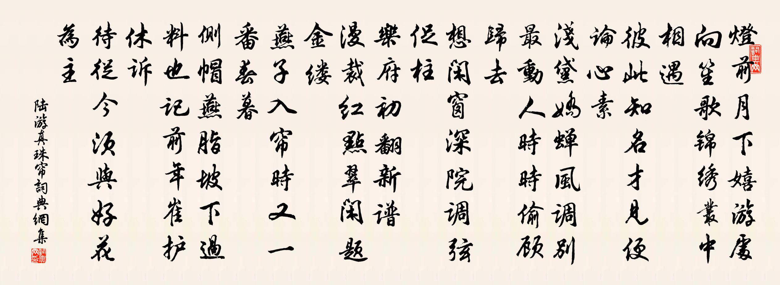 燈前月下嬉遊處。向笙歌、錦繡叢中相遇。