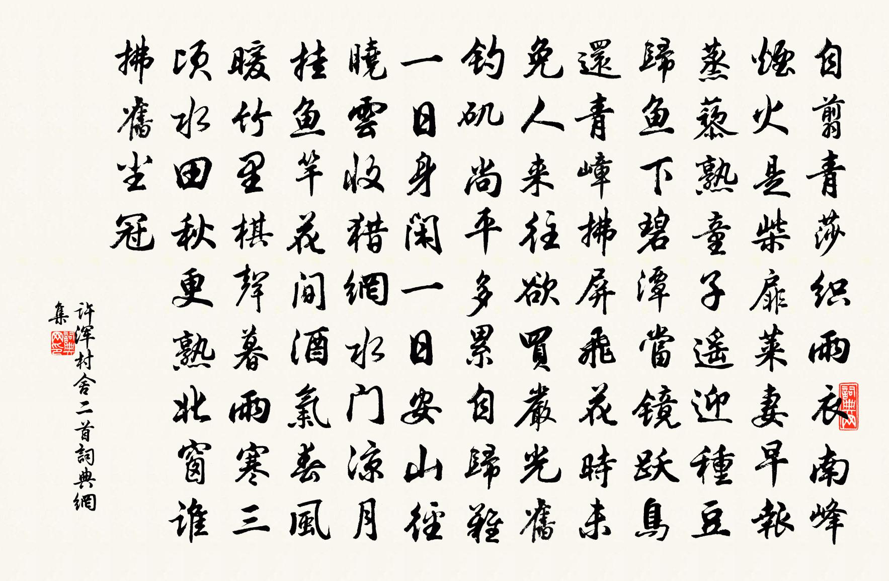 自翦青莎織雨衣,南峰煙火是柴扉。萊妻早報蒸藜熟,童子遙迎種豆歸。