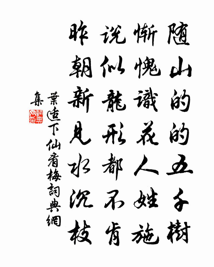詩詞名句歷史字典書法欣賞書法字典國語詞典說文解字康熙字典古漢語字典標 題 作 者 詩 句 下仙看梅作者:葉適 朝代:宋代下仙看梅原文隨山的的五千樹,慚愧識花人姓施。說似龍形都不肯,昨朝新見水沉枝。詩詞問答問:下仙看梅的作者是誰?答:葉適問:下仙看梅寫於哪個朝代?答:宋代葉適下仙看梅書法欣賞下仙看梅書法作品詩詞推薦北寺蘇軾〔宋代〕唐初傳有此,亂後不留碑。畏虎關門早,無村得米遲。山泉自入瓮,野桂不勝炊。信美那能久,應先學忍飢。爇心香 贈張劉二都料馬鈺〔元代〕奉勸清河,酷告彭城。暨諸公、休苦勞神。速離火院,早出迷津。縱水雲遊,歸物外,作閒人。端的修行,洗滌心寒夜杜耒〔宋代〕寒夜客來茶當酒,竹爐湯沸火初紅。尋常一樣窗前月,才有梅花便不同。天童道上二首袁燮〔宋代〕嶪岌嶄岩太白峰,高名千古獨稱雄。放懷擬向山頭立,宇宙都歸一望中。塞下曲李賀〔唐代〕胡角引北風,薊門白於水。天含青海道,城頭月千里。露下旗蒙蒙,寒金鳴夜刻。蕃甲鎖蛇鱗,馬嘶青冢白。秋靜寒食懷西湖去歲游從李洪〔宋代〕去年寒食醉西湖,山色空濛暮有無。風急落花隨步積,雨昏垂柳要人扶。偶攜勝友尋泉石,俱有新詩入畫圖。越絕點絳唇元好問〔金代〕簾卷荷香,綺羅人在薰風裡。謝庭家世。來作閨門瑞。象服魚軒,占盡人間貴。應難比。蟠桃花底。一醉三千歲。賀程帥因任四首且言久缺詩筒之意陳造〔宋代〕肯優襄峴劣南徐,行止平時每裕餘。荷紫端宜冠鴛鷺,飛黃猶似顧蟾蜍。緬懷夜燭賡清唱,況許春郊載後車。從此題陳景說詩稿後陳鑒之〔宋代〕今人宗晚唐,琢句亦清好。碧海掣長鯨,君慕杜陵老。小松二首袁燮〔宋代〕瑣瑣新松雜穉杉,青青數寸倚嶄岩。牛岡自有神呵護,未怕林間走鹿饞。秋前風雨頓涼范成大〔宋代〕秋期如約不須催,雨腳風聲兩快哉。但得暑光如寇退,不辭老景似潮來。酒杯觸撥詩情動,書卷招邀病眼開。明日劍池李峴〔唐代〕闔閭葬日勞人力,嬴政穿來役鬼功。澄碧尚疑神物在,等閒雷雨起潭中。句龐籍〔宋代〕毗耶長者入街初。次韻王尉賀雨方岳〔宋代〕老天自不負吾君,誰向靈均三沐熏。鶴立待收連夜雨,龍歸看帶入山雲。摩挲一飽豈易得,愁嘆多年不忍聞。亦欲奉和虢州劉給事使君三堂新題二十一詠北樓韓愈〔唐代〕郡樓乘曉上,盡日不能回。晚色將秋至,長風送月來。倣歸去來辭晃逈〔宋代〕陶令釣魚曾言歸去釣魚來,解釣魚還家不回首。屏貴都遺身外名,忘憂酷嗜杯中釣魚。白傳曾言歸去來,了知浮世送周思道再知漢州三首范祖禹〔宋代〕兩川相望各繁華,二牧蕃宣出一家。衣繡聊為鄉社寵,行看召節向天涯。宮籍監文天祥〔宋代〕軍衙馬足起黃埃,門掩西風夢正回。自入燕關人世隔,隔牆忽送市聲來。工侍國史李丈奉御香禱雪上竺前一夕雪瑞已應程公許〔宋代〕灞橋風景渺荒寒,最好騎驢物色看。得似西胡湖上境,被公驅使入毫端。宿吉州永慶寺徐照〔宋代〕古邑溪邊寺,吟人愛寂寥。少僧齋室廢,乞食釣鄉遙。鍾韻含霜氣,樓檐近斗杓。漢時銅鑄佛,瞻禮到今朝。名句推薦東風吹柳日初長,雨余芳草斜陽。秦觀《畫堂春·春情》 幅巾藜杖北城頭,捲地西風滿眼愁。陸游《秋晚登城北樓》 升堂坐階新雨足,芭蕉葉大梔子肥。韓愈《山石》 邯鄲驛里逢冬至,抱膝燈前影伴身。白居易《邯鄲冬至夜思家》 焉知後之視今,不如今之視昔也?王通《中說·卷七·述史篇》 立身之道何窮,只得一敬字,便事事皆整。王永彬《圍爐夜話·第一六三則》 薊城通漠北,萬里別吾鄉。李頎《古塞下曲》 有情芍藥含春淚,無力薔薇臥曉枝。秦觀《春日》 子規夜半猶啼血,不信東風喚不回。王令《送春》 一別如斯,落盡梨花月又西。納蘭性德《採桑子·當時錯》