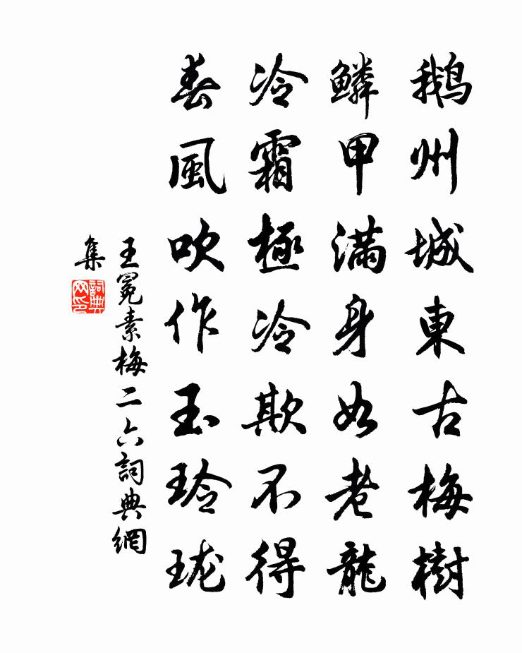 鵝州城東古梅樹,鱗甲滿身如老龍。冷霜極冷欺不得,春風吹作玉玲瓏。
