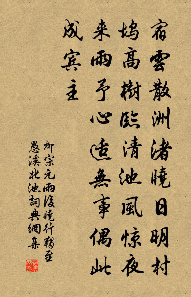 這首五言古詩作於元和五年(810)。題中“愚溪北池”,在零陵西南愚溪之北約六十步。此篇著重描寫愚池雨後早晨的景色。