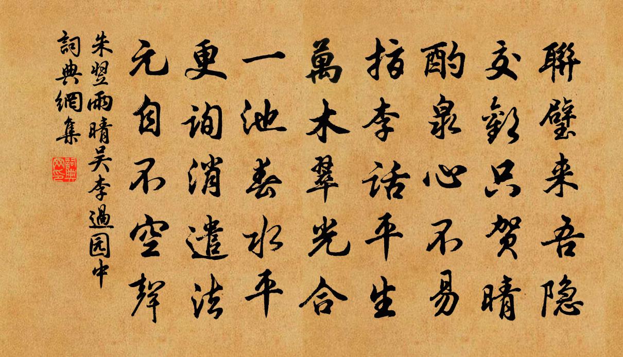 詩詞名句歷史字典書法欣賞書法字典國語詞典說文解字康熙字典古漢語字典標 題 作 者 詩 句 雨晴吳李過園中作者:朱翌 朝代:宋代雨晴吳李過園中原文聯璧來吾隱,交歡只賀晴。酌泉心不易,指李話平生。萬木翠光合,一池春水平。更詢消遣法,元自不空聲。詩詞問答問:雨晴吳李過園中的作者是誰?答:朱翌問:雨晴吳李過園中寫於哪個朝代?答:宋代朱翌雨晴吳李過園中書法欣賞雨晴吳李過園中書法作品詩詞推薦丹陽懷古邵彪〔宋代〕故里詩人去,湖山最寂寥。草深張祜宅,花暗許渾橋。鳳髓何時續,蓬萍觸處飄。鴻冥杳難及,霜鬢兩蕭蕭。與人話舊邵雍〔宋代〕耳目所聞見,且言三十春。才更十次閏,已換一番人。圮族綺紈故,朱門車馬新。從來皆偶爾,可者謂功勳。偈二首釋道川〔宋代〕東邊覷了復西觀,拄杖重重話歲寒。帶雨一枝花落盡,不煩公子倚欄乾。送巢邑孫簿兼過江南家墅宋庠〔宋代〕楚客才多不奈秋,長安赴集苦淹留。半綸綬采緇塵化,十幅帆陰素潦收。離恨枉能寬頻眼,歸期猶喜詠刀頭。督租舊題蘇武詩 / 別詩四首·其一佚名〔兩漢〕骨肉緣枝葉,結交亦相因。四海皆兄弟,誰為行路人。況我連枝樹,與子同一身。昔為鴛與鴦,今為參與辰。昔者謁金門盧祖皋〔宋代〕秋幾許。荒蓼敗荷煙渚。貼水飛鷗江欲暮。風帆追急羽。蝶夢轉頭無據。愁到曲屏深處。寒入雙城扃繡戶。也應聞山居詩釋延壽〔宋代〕投足煙巒養病軀,馳求終是用工夫。知般有作皆從智,萬種無依自合愚。意地已拋塵事業,心田唯種稻根株。非時古樂府·蘭草自然香佚名〔兩漢〕蘭草自然香,生於大道旁。要鐮 * 月,俱在束薪中。以讀書破萬卷下筆如有神為韻賦十詩送趙然然方回〔宋代〕所謂先天易,諸人識不破。獨一觀物翁,入手不放過。太極是生兩,然後品物播。參以邵子言,佛老義自墮。句佚名〔宋代〕地下若逢秦相國,也應不說到沅湘。醜奴兒/採桑子宋先生〔宋代〕真人本是凡人做,悟者何難。名利如山。隔斷神仙路往還。謝師指教生死限,長在心間。長在心間。十二時中不暫贈樊處士齊己〔唐代〕小子聲名天下知,滿簪霜雪白 * 。誰將一著爭先後,共向長安定是非。有路未曾迷日用,無貪終不亂天機。閒尋范漕生日王灼〔宋代〕治忽本天運,賢哲豈浪出。中興信可期,帝為賚良弼。嶄嶄岷峨山,西南著第一。山靈借英氣,成此垂雲翼。才多京口甘露寺登眺陳鑒之〔宋代〕吹帽海風鴉背起,馮夷知我酒微醺。樓台氣壓金焦浪,鐘鼓聲飛淮浙雲。戈甲虎爭余塊石,榛蕪鼪嘯幾斜曛。山僧諸公皆和詩再用韻並屬湛挺之七首趙蕃〔宋代〕翰墨平生友,江山數面親。誦騷悲楚國,訪古失秦民。丘壑豈無趣,塵埃空此身。風行思數數,糧食厭頻頻。石塘感舊十絕劉克莊〔宋代〕比丘會泣別瞿曇,秦失三號吊老聃。自笑此翁非鐵漢,白頭來此哭同參。思佳客高觀國〔宋代〕寫出梨花雨後晴。凝脂洗盡見天真。春從翠髻堆邊見,嬌自紅綃脫處生。天寶夢,馬嵬塵。斷魂無復到華清。恰如從趙彥特求茶李若水〔宋代〕飯余日影轉修廊,欹枕桐花墮小窗。為覓春風洗殘夢,要令詩思敵澄江。寄李舒州二首趙蕃〔宋代〕剩欲題詩詩不成,遣人空復附書行。言邊詎止寒溫事,紙上胡能底里傾。以我向公深有托,知公天我未忘情。扶持點絳唇(細香竹)王十朋〔宋代〕秀色娟娟,最宜雨沐風梳際。徑幽香細。草滴青襟袂。一日才無,便覺生塵態。軒窗外。數竿相對。不減王猷愛。名句推薦一粥一飯,當思來處不易;半絲半縷,恆念物力維艱。朱柏廬《朱子家訓·全文》 如何同枝葉,各自有枯榮李白《樹中草》 穿花蛺蝶深深見,點水蜻蜓款款飛杜甫《曲江二首》 人逢喜事精神爽,悶上心來瞌睡多。吳承恩《西遊記·第三十五回》 涓涓不壅,終為江河佚名《孔子家語·觀周》 西門秦氏女,秀色如瓊花。李白《秦女休行》 取酒須勤醉,鄉關不可思。司馬光《送張寺丞覲知富順監》 晴日暖風生麥氣,綠陰幽草勝花時。王安石《初夏即事》 君子不怨天,不尤人。孟子《孟子·公孫丑章句下·第十三節》 以肉去蟻蟻愈多,以魚驅蠅蠅愈至。韓非及後人《韓非子·外儲說左下》