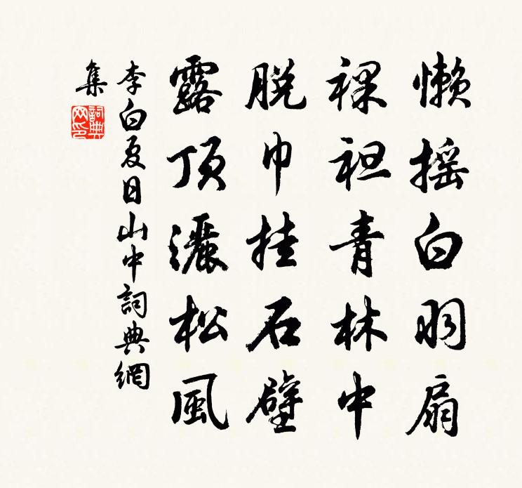 懶搖白羽扇,裸袒青林中。脫巾掛石壁,露頂灑松風。