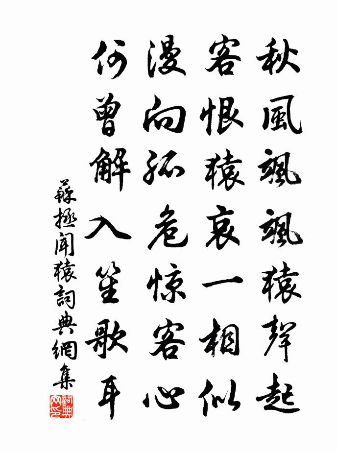 詩詞名句歷史字典書法欣賞書法字典國語詞典說文解字康熙字典古漢語字典標 題 作 者 詩 句 聞猿作者:蘇拯 朝代:唐代聞猿原文秋風颯颯猿聲起,客恨猿哀一相似。漫向孤危驚客心,何曾解入笙歌耳。詩詞問答問:聞猿的作者是誰?答:蘇拯問:聞猿寫於哪個朝代?答:唐代問:聞猿是什麼體裁?答:七古蘇拯聞猿書法欣賞聞猿書法作品注釋全唐詩:卷718-26詩詞推薦壽竹西丘葵〔宋代〕中秋八月朔,人在竹之西。講席朝齊聽,吟寮夜獨棲。交情今管鮑,清操古夷齊。卻笑苔磯老,畏人頭愈低。燕李錄事韋應物〔唐代〕與君十五侍皇闈,曉拂爐煙上赤墀。花開漢苑經過處,雪下驪山沐浴時。近臣零落今猶在,仙駕飄颻不可期。此日喜晴陸游〔宋代〕久雨群蛙日夜號,樂哉霽色滿江郊。草書已悟屋漏壁,詩句免悲風卷茆。喚婦晴鳩鳴廢圃,歸林棲鶻補危巢。泥乾次韻許深父張栻〔宋代〕下瞰寒江百尺坡,小松新種也婆娑。栽培擬待凌雲日,眼底浮花奈若何。和鄭閎中仙居十一首陳襄〔宋代〕我愛仙居好,三年理尚寬。民雖離網罟,政未息風瀾。憫物刑多省,勞心席少安。只慚無惠術,求配古人難。送虞司理赴官辰州二首項安世〔宋代〕當年有虞氏,初作理官名。正以蠻兼冠,須煩允與明。雲孫今筮仕,溪子正稱兵。淑問端能繼,淮夷不足平。詩退風濤江萬里〔宋代〕萬里為官徹底清,舟中行止甚分明。如今若有虧心事,一任碧波深處沉。謝送桂花鄭清之〔宋代〕金闕真黃入靚妝,仙葩何事到鱣堂。只緣風雨要人甚,窖取旃林百斛香。金剛隨機無盡頌知見不生分第三十一釋印肅〔宋代〕慮恐後來迷,黃葉止孩啼。依前不是息,閒且伸眉□。隴西行·天上何所有佚名〔兩漢〕天上何所有,歷歷種白榆。桂樹夾道生,青龍對道隅。鳳凰鳴啾啾,一母將九雛。顧視世間人,為樂甚獨殊。好婦南康縣圃賞梨花呈長官趙必象〔宋代〕種花之暇點春芳,把酒花邊試洗妝。差勝當年潘令尹,空載桃李滿河陽。黃超然參議和拙者去郡十五絕又以詩見寄屬痰吳芾〔宋代〕三復詩翁白雪篇,渴塵俄得醉心泉。高人固已追摩詰,好句還應壓玉川。快似涼風來木末,清如皓月出雲邊。呼兒奉和襲美太湖詩二十首上真觀陸龜蒙〔唐代〕嘗聞升三清,真有上中下。官居乘佩服,一一自相亞。霄裙或霞粲,侍女忽玉奼。坐進金碧腴,去馳飆欻駕。今來齋宿南山堂呂良叔〔宋代〕寒窗一穗篆煙斜,紙帳孤眠對月華。信是道人風味別,枕邊只欠著梅花。次韻游龍門十絕洪咨夔〔宋代〕武陵溪上迷津處,衡岳峰頭失道時。珍重牧兒相指似,隔林招手不吾欺。飛將李新〔宋代〕老翁望封竟無有,自是翁骨生來醜。猿臂懸知不入相,且有殺降聊藉口。翁今遠孫骨雖瘦,不解鵰能飲酒。自漢至子虡調官行在寓{左飠右茲}團巷,初冬遽寒甚陸游〔宋代〕歲晚江湖行路難,一樽何日共開顏?汝方僵臥{左飠右茲}團巷,我亦飢吟飯顆山。寄趙慶御陳允平〔宋代〕十年一別雙溪路,君自江南我浙東。彼此有書無雁寄,只應清夢與君同。妾命薄陸游〔宋代〕妾命薄,早入天家侍帷幄。君王勤儉省宴遊,寶柱朱弦塵漠漠。日長別殿承恩稀,旱昃猶聞親萬機。宮中雖無珠玉除夜直都廳囚系皆滿日暮不得返舍因題一詩於壁蘇軾〔宋代〕除日當早歸,官事乃見留。執筆對之泣,哀此系中囚。小人營餱糧,墮網不知羞。我亦戀薄祿,因循失歸休。不須名句推薦人法地,地法天,天法道,道法自然。老子《老子·道經·第二十五章》 風雨牢愁無著處,那更寒蛩四壁。文天祥《酹江月·和友驛中言別》 草滿池塘水滿陂,山銜落日浸寒漪。雷震《村晚》 宴爾新婚,以我御窮。佚名《谷風》 杏樹壇邊漁父,桃花源里人家。王維《田園樂七首·其三》 愁煩中具瀟灑襟懷,滿抱皆春風和氣;暗昧處見光明世界,此心即白日青天。王永彬《圍爐夜話·第七八則》 道隱於小成,言隱於榮華。莊子《莊子·內篇·齊物論》 靡不有初,鮮克有終。佚名《盪》 紛紛暮雪下轅門,風掣紅旗凍不翻。岑參《白雪歌送武判官歸京》 半竿落日,兩行新雁,一葉扁舟。賀鑄《眼兒媚·蕭蕭江上荻花秋》