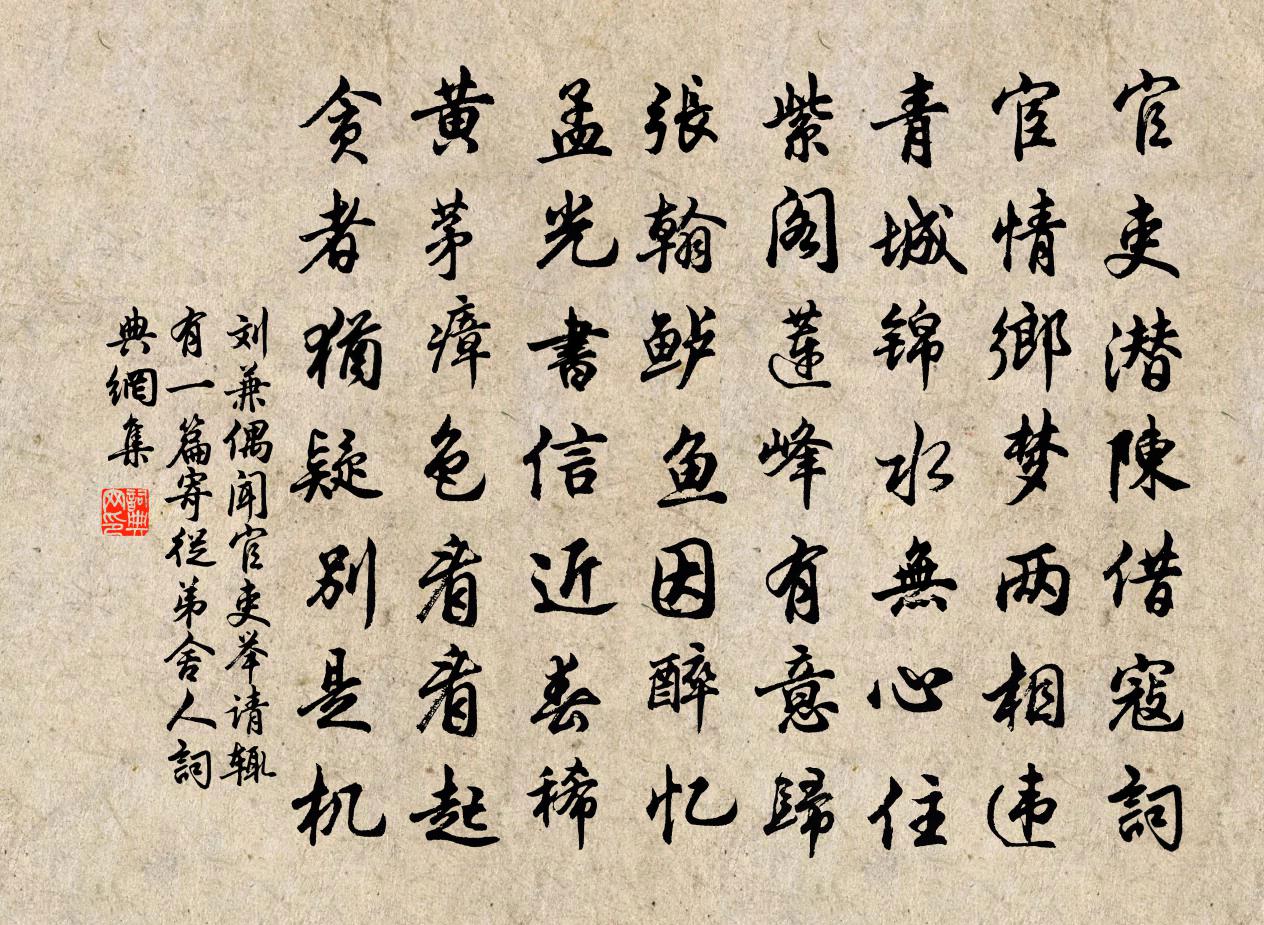 詩詞名句歷史字典書法欣賞書法字典國語詞典說文解字康熙字典古漢語字典標 題 作 者 詩 句 偶聞官吏舉請,輒有一篇寄從弟舍人作者:劉兼 朝代:唐代原文官吏潛陳借寇詞,宦情鄉夢兩相違。青城錦水無心住,紫閣蓮峰有意歸。張翰鱸魚因醉憶,孟光書信近春稀。黃茅瘴色看看起,貪者猶疑別是機。詩詞問答問:《偶聞官吏舉請,輒有一篇寄從弟舍人》的作者是誰?答:劉兼問:該詩寫於哪個朝代?答:唐代書法欣賞偶聞官吏舉請,輒有一篇寄從弟舍人書法作品注釋全唐詩:卷766-70詩詞推薦甘州(寄李筠房)張炎〔宋代〕望涓涓、一水隱芙蓉,幾被暮雲遮。正憑高送目,西風斷雁,殘月平沙。未覺丹楓盡老,搖落已堪嗟。無避秋聲處挽陳常卿二首劉克莊〔宋代〕幼共從師長五年,暮齡彼此各華顛。我辭台斗先還笏,君望蓬萊忽引船。差勝於朝於市者,相攜某水某丘邊。老儒戲效屏山書齋十詠劉克莊〔宋代〕尖新賴摹畫,老禿計休閒。露頂張長史,科頭管幼安。六月七日泊金陵,阻風,得鐘山泉公書,寄詩蘇軾〔宋代〕今日江頭天色惡,炮車雲起風欲作。獨望鐘山喚寶公,林間白塔如孤鶴。寶公骨冷喚不聞,卻有老泉來喚人。電眸頌證道歌證道歌釋印肅〔宋代〕一超直入如來地,自是眾生不了利。行住坐臥總皆真,逐末興心成執滯。桑茶坑道中八首楊萬里〔宋代〕兩邊山束一溪風,盡日行程在井中。猶喜天圍能里許,井中那得個寬通。甲辰恭和御製徐元傑〔宋代〕袞衣日月煙當軒,光逮芻蕘采眾言。內外修攘明治體,憂勤終始養心源。英髦瑞列霜中乾,治化春回雪裡根。願溥送司空神童王建〔唐代〕杏花壇上授書時,不廢中庭趁蝶飛。暗寫五經收部秩,初年七歲著衫衣。秋堂白髮先生別,古巷青襟舊伴歸。獨向送元厚之待制出守福唐王珪〔唐代〕南擁旌旗照海傍,甘泉新第從臣章。三休華閣窺天象,幾日朝衣帶御香。溪水以流隨畫楫,荔枝初綠映雕觴。頒春頌古二十八首釋道川〔宋代〕師子咬人,狂狗逐塊。三十里來方始悟,何似當初莫入去。浣溪沙·泉湖道中赴閩憲別諸君辛棄疾〔宋代〕細聽春山杜宇啼。一聲聲是送行詩。朝來白鳥背人飛。對鄭子真岩石臥,趁陶元亮菊花期。而今堪誦北山移。減字木蘭花朱敦儒〔宋代〕年衰人老。矍鑠支離君莫笑。白日青天。我自心情勝少年。超凡入妙。遊戲神通隨意到。酒聖詩仙。舞棹虛空駕鐵江上一首王阮〔宋代〕虜馬秋來健,天儂水底藏。荻花江面冷,草色岩頭荒。揚子真天險,淮南盡日忙。邊隅今夜甲,吾原莫飛霜。題興化小閣李新〔宋代〕迎馬玉簪看作竹,浸籬鴨綠已盈溝。田園秀潤吾無著,卻要江湖一小舟。缽囊有潤何癯瘠,魚鼓無聲太寂寥。更向李伯紀丞相輓詩趙令衿〔宋代〕道大終為累,功高反被疑。恨無長日月,寶此大蓍龜。鼓咽空山暮,風酸落木悲。弔喪哀不及,賴有器公詩。贈林使君陸游〔宋代〕松檜陰中百步廊,我來剝啄叩琳房。魚腸寶劍余蛟血,鴉嘴金鋤帶藥香。弱水蓬萊風浩浩,赤明龍漢劫茫茫。何妨頌古五十五首釋紹曇〔宋代〕身後身前不丈夫,钁頭邊事想含糊。不知費幾蒼松機,換得渠儂破缽盂。贈歐陽叔弼學士陳師道〔宋代〕早知汝潁多能事,晚以詩書托下寮。大府禮容寬懶慢,故家文物尚嫖姚。只將憂患供談笑,敢望功名答聖朝。歲歷贈楓橋化城院老僧陸游〔宋代〕老宿禪房裡,深居罷送迎。爐紅豆萁火,糝白芋魁羹。毳衲年年補,紗燈夜夜明。門前霜半寸,笑我事晨征。偈傾一百六十九首釋智朋〔宋代〕爰從耳門,圓照三昧。緣心自在,東倒西擂。異中現同,小中現大。只如不涉眼色耳聲,甚處與他相見,婺機羅,名句推薦騁望因高雲外盡,鄉關回首愧煙蘿。石茂華《九月九日登長城關》 好水好山看不足,馬蹄催趁月明歸。岳飛《池州翠微亭》 靜女其孌,貽我彤管。佚名《靜女》 恨身翻不作車塵,萬里得隨君。歐陽炯《巫山一段雲·春去秋來也》 江天一色無纖塵,皎皎空中孤月輪。張若虛《春江花月夜》 一行足以玷終身,故古人飭躬若璧,惟恐有瑕疵也。王永彬《圍爐夜話·第四八則》 把酒送春春不語。黃昏卻下瀟瀟雨。朱淑真《蝶戀花·送春》 放眼暮江千頃,中有離愁萬斛,無處落征鴻。楊炎正《水調歌頭·把酒對斜日》 鳥雀不知郊野好,穿花翻戀小庭中。高珩《春日雜詠》 不見年年遼海上,文章何處哭秋風?李賀《南園十三首》
