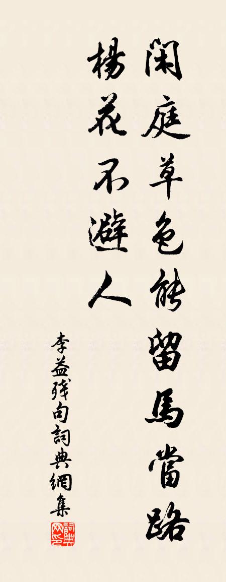 閒庭草色能留馬,當路楊花不避人。(張為《主客圖》)