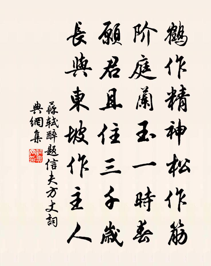 鶴作精神松作筋,階庭蘭玉一時春。願君且住三千歲,長與東坡作主人。