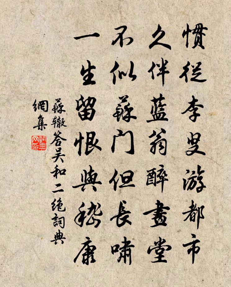 慣從李叟游都市,久伴藍翁醉畫堂。不似蘇門但長嘯,一生留恨與嵇康。