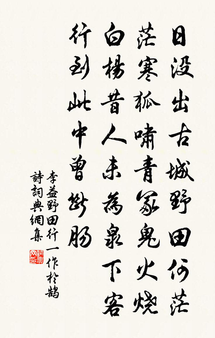 日沒出古城,野田何茫茫。寒狐嘯青冢,鬼火燒白楊。