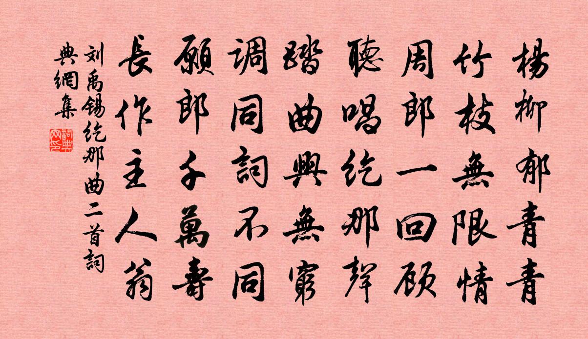 楊柳郁青青,竹枝無限情。周郎一回顧,聽唱紇那聲。