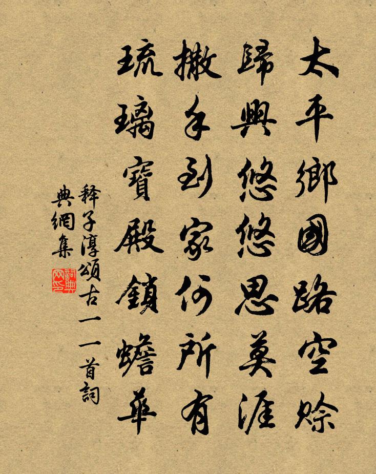 詩詞名句歷史字典書法欣賞書法字典國語詞典說文解字康熙字典古漢語字典標 題 作 者 詩 句 頌古一○一首作者:釋子淳 朝代:宋代頌古一○一首原文太平鄉國路空賒,歸興悠悠思莫涯。撒手到家何所有,琉璃寶殿鎖蟾華。詩詞問答問:頌古一○一首的作者是誰?答:釋子淳問:頌古一○一首寫於哪個朝代?答:宋代釋子淳頌古一○一首書法欣賞頌古一○一首書法作品詩詞推薦金剛隨機無盡頌法身非相分第二十六釋印肅〔宋代〕如來一念周,無盡意風流。豐乾騎老虎,溈山跨水牛。樂語王義山〔宋代〕戲袞玉球添一笑。笑道輕狂,似恁人間少。偏倚龍池依鳳沼。隨風得得低迴繞。掠麵點衣夸百巧。似雪飛花,點束閒詠陸游〔宋代〕身似地行僊,心非欲界天。輿竿聲軋軋,巾角影翩翩。買菊穿苔種,懷茶就井煎。歸來書遶坐,隨處一欣然。汝南灣馬之純〔宋代〕當時只號汝南灣,後有三人住此間。自謂逸民須隱約,並稱賢士想高閒。只緣水味都殊異,且欲鄰居數往還。好是送方郎唐卿漕試劉克莊〔宋代〕翁已鞭鸞上九霄,此郎雖小亦清標。斯文尚有嫡傳在,每見能令人意消。身退吾難論一鶚,才高君必中雙鵰。漢廷感皇恩(駕霄亭觀月)張鎡〔宋代〕詩眼看青天,幾多虛曠。雨過涼生氣蕭爽。白雲無定,吹散作、鱗鱗瓊浪。尚餘星數點,浮空上。明月飛來,寒光倚樓曲王銍〔宋代〕天邊皎月凝清光,圓缺不如人意長。夜來常娥和月落,清曉鏡裹看新妝。此情同生復同死,君似欄桿要堪倚。樓高投寄韋右丞羅隱〔唐代〕赤壁徵文聘,中台拜郄詵。官資參令仆,曹署轄星辰。幞被從誰起,持綱自此新。舉朝明典教,封納詔書頻。禁樹龍游八景翠岩春雨鄭得彝〔宋代〕雨急林花第幾峰,層層岩翠沐嵌空。回頭萬象皆生意,綠遍天涯造化功。登汾上閣鄭中丞〔唐代〕汾桂秋水闊,宛似到閶門。惆悵江湖思,惟將南客論。鯨川八景客船晚煙家鉉翁〔宋代〕去棹來帆一聚塵,箇中那復有詩情。晚來應是盧仝過,留得茶煙一抹橫。呂顏野飲醉中寄五絕句次其韻李廌〔宋代〕手持金盞灩斜暉,目送歸鴻萬里飛。還似習家池上日,醉中倒載接?歸。和壽州宋待制九題其二春暉亭梅堯臣〔宋代〕卉木日以發,中圃日以嘉。歡言樂和景,及此鬢未華。春風實無幾,凌亂枝上花。山陰況暮月,府仰誠可嗟。待月贊釋紹曇〔宋代〕末後句,如何舉。眨得眼來,月圓當戶。何曾知落處。送范中濟侍郎知慶州孔武仲〔宋代〕平時廣朝中,相見輒歡喜。昂藏八尺身,所負必奇偉。四方獻善敗,軍國盈虛計。叩之如川流,滾滾不知已。天子除夜憶福清塘東諸友陳藻〔宋代〕去年除夜作吟思,除夜今年久別離。幸喜此身貧卻健,柴爐更隔一年期。題蘇氏巽風閣李石〔宋代〕巽風起東南,大地萬物小。吳門共延矚,匹練橫江表。湘中阻風孔武仲〔宋代〕夜泊湖南岸,曉開天北風。愁雲來覆渚,白浪起吞空。瓮酒霞將薄,瓶花錦帶紅。鄰舟如隔海,孤坐寂寥中。翠碧陸龜蒙〔唐代〕紅襟翠翰兩參差,徑拂煙華上細枝。春水漸生魚易得,莫辭風雨坐多時。丙寅正月張九成〔宋代〕常年正月未全春,春色今年輒去人。試上小樓南北望,紅英滿地綠粼粼。名句推薦春日宴,綠酒一杯歌一遍。馮延巳《長命女·春日宴》 情如之何,暮塗為客,忍堪送君。吳文英《沁園春·送翁賓暘游鄂渚》 禍難生於邪心,邪心誘於可欲。韓非及後人《韓非子·解老》 醉折殘梅一兩枝,不妨桃李自逢時。陸游《落梅》 日下壁而沉彩,月上軒而飛光。江淹《別賦》 鞭個馬兒歸去也,心急馬行遲。辛棄疾《武陵春·走去走來三百里》 巧而好度,必節;勇而好同,必勝;知而好謙,必賢。荀子《荀子·仲尼》 應是夜寒凝。惱得梅花睡不成。黃升《南鄉子·冬夜》 奴為出來難,教君恣意憐。李煜《菩薩蠻·花明月暗籠輕霧》 天涯倚樓新恨,楊柳幾絲碧。晏幾道《六么令·雪殘風信》