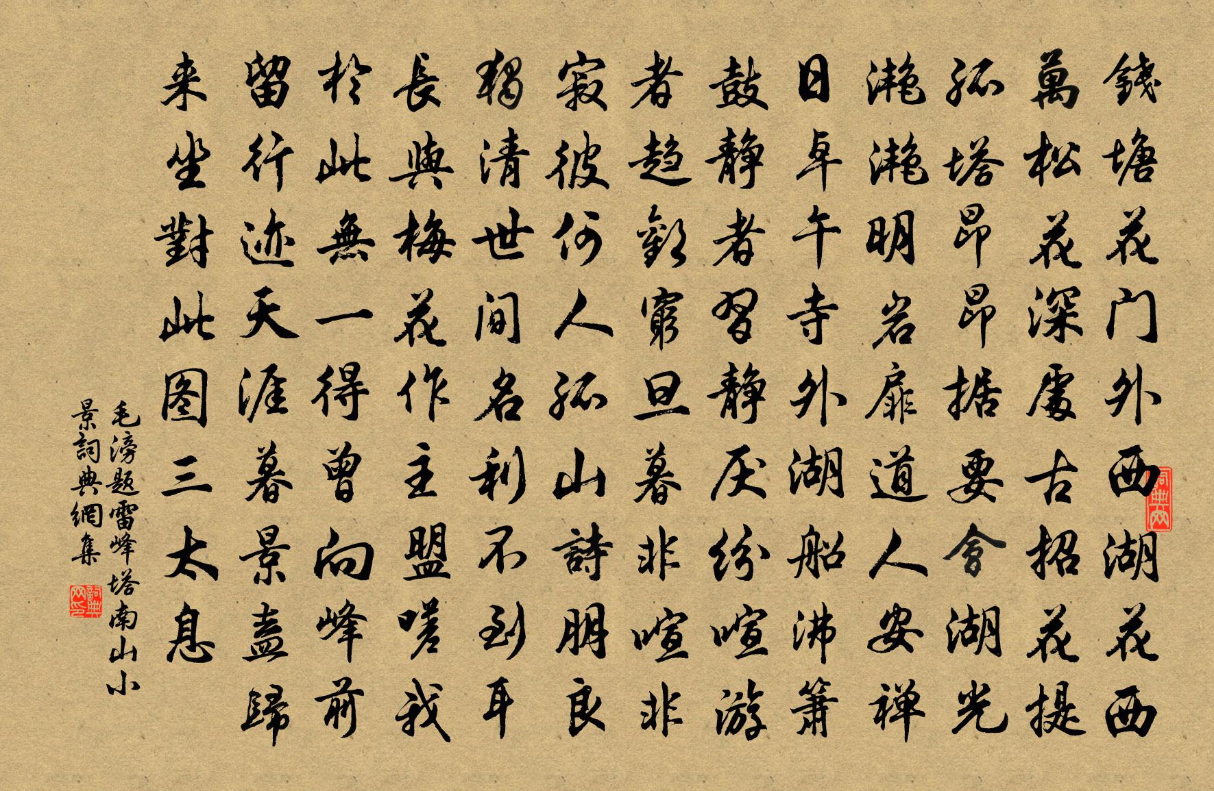 毛滂題雷峰塔南山小景書法欣賞