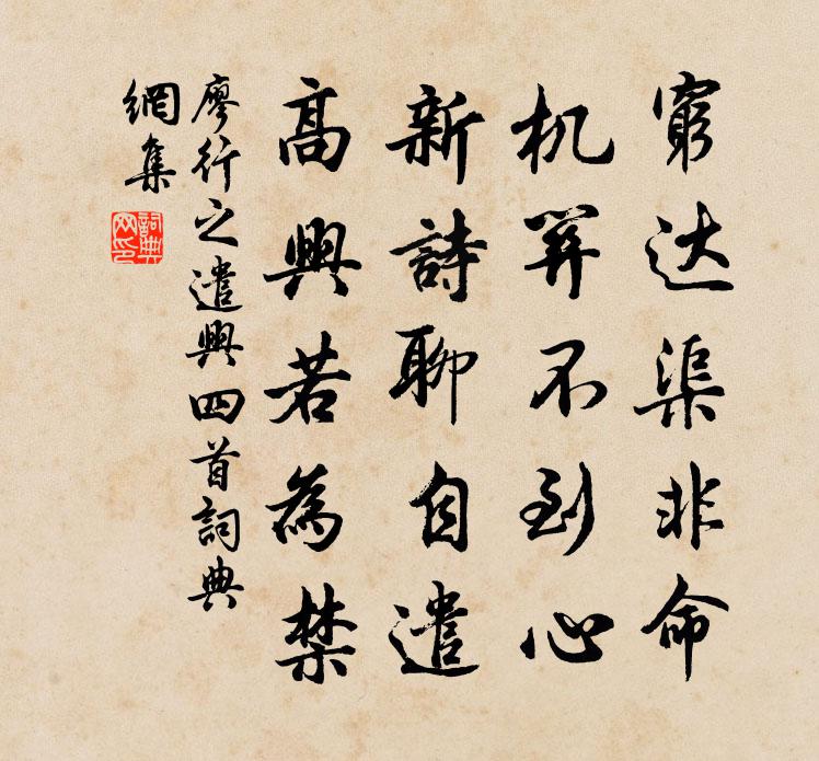 詩詞名句歷史字典書法欣賞書法字典國語詞典說文解字康熙字典古漢語字典標 題 作 者 詩 句 遣興四首作者:廖行之 朝代:宋代遣興四首原文窮達渠非命,機關不到心。新詩聊自遣,高興若為禁。詩詞問答問:遣興四首的作者是誰?答:廖行之問:遣興四首寫於哪個朝代?答:宋代廖行之遣興四首書法欣賞遣興四首書法作品詩詞推薦汪丞招飲問梅趙汝鐩〔宋代〕把酒問梅開也未,巡檐搜見兩三枝。祗緣今歲寒差甚,故比常年花較遲。折向紛華筵畔看,輸池冷淡水邊時。含香山下晚晴崔曙〔唐代〕寥寥遠天淨,溪路何空濛。斜光照疏雨,秋氣生白虹。雲盡山色暝,蕭條西北風。故林歸宿處,一葉下梧桐。酬舒公見寄唐求〔唐代〕無客不言云外見,為文長遣世間知。一聲松徑寒吟後,正是前山雪下時。湖上村家司馬光〔宋代〕萬頃寒煙外,茅茨枕碧流。楓林巢乳鶴,沙漵亂鳴鷗。漠漠菰蒲晚,蒼蒼蘆荻秋。欲過南浦去,籬下出漁舟。脫身軍府暫憩先月亭前挹湖光左右花木交映壁羅公升〔宋代〕四年塵沙中,奔走日不給。空歌下泉詩,頗愧夔子集。今晨出軍府,心與歸鳥急。花迎曉日笑,樹沐清露濕。清漪和粹伯七夕韻曾協〔宋代〕天上相逢絕點塵,莫將世態測高真。深閨兒女傳聞誤,見說秋期便妒人。送畢彥祖先之京師賀鑄〔宋代〕日日東風吹旱雲,弄鞭低帽送西曛。客亭五里復十里,春物三分今二分。但解征衣平酒債,莫隨肥馬作塵紛。扁舟偈頌二百零五首釋正覺〔宋代〕不即不離,非取非舍。自東自西,誰上誰下。委曲也順俗亡功,驀直也應真不惜。珠中有火君須信,休向天邊問太偈頌二百零五首釋正覺〔宋代〕壽等南山,位崇北斗。機運象先,體同道久。明逾日月兮普及幽深,德合乾坤兮廓無前後。晚晴洪咨夔〔宋代〕子規聲裹半晴陰,百丈牽行岸草深。挾雨倒迴風有力,避山橫轉水無心。人於熟處難為別,酒到離邊不標斟。漁叟偈頌一百零二首釋慧遠〔宋代〕道大兮功不立,隅無兮方莫存。跨鰲頭兮歸巨海,挾月角兮出天門。麗春張耒〔宋代〕蓬蒿眼已熟,收拾到阿麗。徒分色黃白,未害格妾婢。爭妍知不足,出刺以自衛。上有寒梅枝,春霜一憔悴。過嵩陰隱者李頻〔唐代〕當門看少室,倚杖復披衣。每日醒還醉,無人是與非。架書抽讀亂,庭果摘嘗稀。獨有江南客,思家未得歸。代天寧寺僧可舉贈梓人善斲歌陳著〔宋代〕四明山南郁嵯峨,異氣上與青天摩。人豪挾秀布山下,余為巧匠擅一窩。頎然而長獨出者,此中巧處得最多。誰知書感陸游〔宋代〕楚些難招去乾魂,正令舌在向誰論?中分白日歸欹枕,全付青春與杜門。凜凜咥人愁履虎,區區染指畏嘗黿。殘年宮詞王珪〔唐代〕侍輦歸來步玉階,試穿金縷鳳頭鞋。階前摘得宜男草,笑插黃金十二釵。泛舟至近村茅徐兩舍勞以尊酒陸游〔宋代〕小舸悠揚亦樂哉!迢迢故取北村回。山從樹外參差出,水自城陰曲折來。樂歲共忘東作苦,殘租不待急符催。舊鄰偈頌一百六十首釋宗杲〔宋代〕白的的,清寥寥。水不能濡,火不能燒。山居雜詩九十首曹勛〔宋代〕鑿池固不廣,納納隘所居。苟無水光寒,便覺非吾廬。漪漣漾芳渚,澄影浮晴虛。樂哉濠梁心,已復游嘉魚。昨者張耒〔宋代〕昨者飛雹幾破屋,頗說四郊妨麥熟。十日霖雨一日晴,泥潦漫漫不容足。淒風寒涼肅肌骨,五月更衣初秋服。草木名句推薦不積跬步,無以致千里;不積小流,無以成江海。李昉、李穆、徐鉉《太平御覽·學部·卷一》 大德不官,大道不器,大信不約,大時不齊。戴聖《禮記·學記》 鮑魚蘭芷,不同篋而藏劉向《說苑·指武》 巧詐不如拙誠。韓非及後人《韓非子·說林上》 結髮為夫妻,恩愛兩不疑。蘇武《留別妻》 好言難得,惡語易施。佚名《增廣賢文·上集》 松樹千年終是朽,槿花一日自為榮。白居易《放言五首·其五》 隨風潛入夜,潤物細無聲。杜甫《春夜喜雨》 反聽之謂聰,內視之謂明,自勝之謂強。司馬遷《史記·商君列傳》 未老莫還鄉,還鄉須斷腸。韋莊《菩薩蠻·人人盡說江南好》