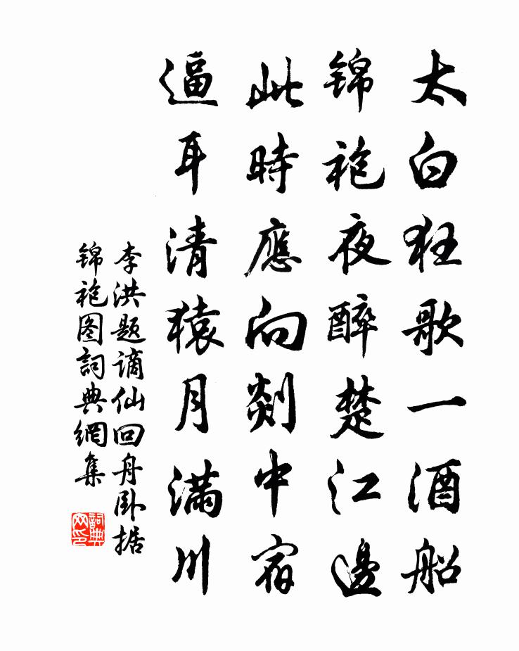 詩詞名句歷史字典書法欣賞書法字典國語詞典說文解字康熙字典古漢語字典標 題 作 者 詩 句 題謫仙回舟臥據錦袍圖作者:李洪 朝代:宋代題謫仙回舟臥據錦袍圖原文太白狂歌一酒船,錦袍夜醉楚江邊。此時應向剡中宿,逼耳清猿月滿川。詩詞問答問:題謫仙回舟臥據錦袍圖的作者是誰?答:李洪問:題謫仙回舟臥據錦袍圖寫於哪個朝代?答:宋代李洪題謫仙回舟臥據錦袍圖書法欣賞題謫仙回舟臥據錦袍圖書法作品詩詞推薦觀寺中盂蘭盆會有嘆宋伯仁〔宋代〕欣欣來認祖先名,梵杵丁東月二更。滿地紙錢香篆冷,更無真哭兩三聲。讀黃子實詩卷吳泳〔宋代〕唐人漫自說金華,山谷雲孫自當家。玄色釀成真一酒,別機織出象生花。緬懷友義留巫峽,難割閨情下漢嘉。看徹擬和御製郊祀詩李洪〔宋代〕新地彌文考九丘,寅威郊見故遲留。黃琮蒼玉神娭燕,月璧星珠瑞應浮。禮洽漢山呼萬歲,事殊唐鑒獻千秋。侍臣玉泉施樞〔宋代〕水跡無增減,從知地有靈。群魚潛異窟,一芥納滄溟。濟隱新留詠,超師舊講經。聖時調玉燭,龍睡不須醒。春秋戰國門再吟周曇〔唐代〕門下三千各自矜,頻彈劍客獨無能。田文不厭無能客,三窟全身果有憑。修仙詞施肩吾〔唐代〕丹田自種留年藥,玄谷長生續命芝。世上漫忙兼漫走,不知求己更求誰。與彥博審知同為問梅之行到溪南仆與審知俱以趙蕃〔宋代〕由梅且翩翩,溪柳向婀娜。群行欲何詣,僧屋惟所可。連朝謾蘄爾,作意終敗我。此事且復然,吾生信多坷。和陶淵明飲酒二十首方回〔宋代〕氣豪心未平,三已復三仕。毫髮志不伸,所至但屈己。屢觸炙眉怒,詎帝折腰恥。七年困江國,脫身走故里。欲著湖山尋梅陸游〔宋代〕小雪湖上尋梅時,短帽亂插皆繁枝。路人看者竊相語:此老胸中常有詩。歸來青燈耿窗扉,心鏡忽入造化機。墨池梁司馬畫馬歌顧況〔唐代〕畫精神,畫筋骨,一團旋風瞥滅沒。仰秣如上賀蘭山,低頭欲飲長城窟。此馬昂然獨此群,阿爺是龍飛入雲。黃沙春風鄭剛中〔宋代〕劉郎桃樹欲撓春,一夜飄零最惱人。不似窮秋作霜露,摧殘蒲柳有誰嗔。西溪冬夜曾協〔宋代〕並埋松柏與雲齊,月夜青山一望低。山鳥不驚人跡絕,步隨流水到前溪。山行方岳〔宋代〕人情何翅抵黃間,鴥彼鴻冥杳莫攀。寵辱可驚浮世事,是非不到好溪山。怒鵬已較三千里,老馬寧思十二閒。丘壑宿潺湲亭張喬〔唐代〕走月流煙疊樹西,聽來愁甚聽猿啼。幾時御水聲邊住,卻夢潺湲宿此溪。梁三朝雅樂歌 雍雅 三沈約〔南北朝〕百司警列。皇在在陛。既飫且醑。卒食成禮。其容穆穆。其儀濟濟。凡百庶僚。莫不愷悌。奄有萬國。抑由天啟。贈樗野白玉蟾〔宋代〕不嘆勞生行路難,自憐雲水許間關。別來五載多懷感,待有尺書無往還。微白一鉤天外月,淡青數點海邊山。襟情送史館任祠部河東轉運使司馬光〔宋代〕問望簪紳舊,恩華雨露重。圖書周內史,汾澮晉全封。秀髮千尋壁,寒生百鍊鋒。歸時門有戟,惜別更從容。春日雜題陸游〔宋代〕梅花三十本,圍以疏竹籬,入春甫十日,開遍南北枝。少年輕節物,老大復苦衰,坐見零落盡,一杯初未持。句晏殊〔宋代〕玉女雕瓊萼,仙禽借菊衣。過百牢關貽舟中者於鄴〔唐代〕蜀國少平地,方思京洛間。遠為千里客,來度百牢關。帆影清江水,鈴聲碧草山。不因名與利,爾我各應閒。名句推薦惟有綠荷紅菡萏,卷舒開合任天真。李商隱《贈荷花》 古人不見今時月,今月曾經照古人。佚名《增廣賢文·上集》 誰見汀洲上,相思愁白蘋。劉長卿《餞別王十一南遊》 餘霞散成綺,澄江靜如練。謝朓《晚登三山還望京邑》 月落沙平江似練。望盡蘆花無雁。張炎《清平樂·候蛩淒斷》 失之東隅,收之桑榆。范曄《後漢書·列傳·馮岑賈列傳》 器乏雕梁器,材非構廈材。趙彥昭《奉和元日賜群臣柏葉應制》 只有天在上,更無山與齊寇準《詠華山》 清秋幕府井梧寒,獨宿江城蠟炬殘。杜甫《宿府》 土膏欲動雨頻催,萬草千花一餉開;范成大《春日田園雜興》