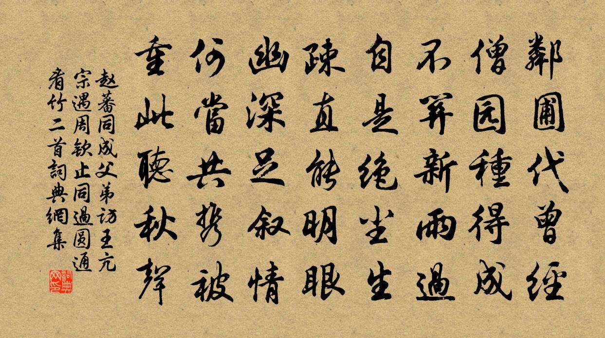 詩詞名句歷史字典書法欣賞書法字典國語詞典說文解字康熙字典古漢語字典標 題 作 者 詩 句 同成父弟訪王亢宗遇周欽止同過圓通看竹二首作者:趙蕃 朝代:宋代原文鄰圃代曾經,僧園種得成。不關新雨過,自是絕塵生。疎直能明眼,幽深足敘情。何當共攜被,重此聽秋聲。詩詞問答問:《同成父弟訪王亢宗遇周欽止同過圓通看竹二首》的作者是誰?答:趙蕃問:該詩寫於哪個朝代?答:宋代書法欣賞同成父弟訪王亢宗遇周欽止同過圓通看竹二首書法作品詩詞推薦路入剡中作方乾〔唐代〕截灣沖瀨片帆通,高枕微吟到剡中。掠草並飛憐燕子,停橈獨飲學漁翁。波濤漫撼長潭月,楊柳斜牽一岸風。便擬前日從趙漕飲因得遍觀所藏書帖之富既戲成三張栻〔宋代〕舊藏自是承平物,新軸收從古道旁。人間好事戒多得,防有雷霆下取將。次韻叔祖題詠澤亭張鎡〔宋代〕疆塞聲威昔據鞍,築亭聊此水雲看,地連牛斗東南勝,心體鳶魚上下觀。一節愛君通表里,百年耽句置炎寒。浣溪沙(和鄭慶襲雪中作)沈與求〔宋代〕雲幕垂垂不掩關,落鴻孤沒有無間。雪花欺鬢一年殘。欲把小梅還斗雪,冷香嫌怕亂沈檀。惱人歸夢繞江乾。寄棻菴主章甫〔宋代〕問訊棻菴主,菴中事若何。得詩堪供佛,學道想無魔。關塞兵戈定,江湖歲月多。他年白蓮社,藜杖飽經過。過濟源登裴公亭用閒閒老人韻耶律楚材〔元代〕山接青霄水浸空,山光灩灩水溶溶。風回一鏡揉藍淺,雨過千峰潑黛濃。金剛隨機無盡頌無得無說分第七釋印肅〔宋代〕聖賢皆一道,十方常浩浩。當體即如來,何須苦修造。春苦風雨王洋〔宋代〕東君始造家,積累亦不細,一從潛陽興,黃鐘本根蒂。二十四信風,以有此紅翠,如何縱飄敗,不作苞桑計。風雨送重表侄王砅評事使南海杜甫〔唐代〕我之曾祖姑,爾之高祖母。爾祖未顯時,歸為尚書婦。隋朝大業末,房杜俱交友。長者來在門,荒年自餬口。家貧丁端叔送牡丹以詩來用韻酬之陳傅良〔宋代〕客來談政已班班,況復書縢一再頒。亦欲頡頏相上下,不容分寸得躋攀。花猶河洛承平□,詩在黃陳輩行間。簿領春居寄友生齊己〔唐代〕莎徑荒蕪甚,君應共此情。江村雷雨發,竹屋夢魂驚。社過多來燕,花繁漸老鶯。相思意何切,新作未曾評。水龍吟王沂孫〔宋代〕翠雲花遙擁環妃花,夜深按花徹霓裳舞花。鉛華淨洗,涓涓出浴,盈盈解語。太液荒寒,海山依約,斷魂何許。甚道元上人累示禪偈詩筆並諸賢賡唱見索鄙作因蘇頌〔宋代〕釋子南宗秀,囊文數見過。燈分壁觀後,詩學寶書多。摘句心遊刃,談空辯注河。儒林盛推挹,風勢張雲柯。謝葉聖予送筍王柏〔宋代〕誰念篔簹一飯貧,蟄龍頭角正森森。殷勤惠我清貞節,減卻君家幾畝陰。題冒辟疆名姬董白小像吳偉業〔清代〕珍珠無價玉無瑕,小字貪看問妾家。尋到白堤呼出見,月明殘雪映梅花。恍惚吟邵雍〔宋代〕恍惚陰陽初變化,氤氳天地乍迴旋。中間些子好光景,安得功夫入語言。四月八日攜子侄到上乘偶成陳著〔宋代〕白首猶堪數里行,相過一笑見山堂。殘僧門徑靜於夜,新夏林塘暖自涼。且借吟床娛半日,何妨歸笠戴斜陽。我來掃花游(用清真韻)周密〔宋代〕柳花颺白,又火冷餳香,歲時荊楚。海棠似語。惜芳情燕掠,錦屏紅舞。怕里流芳,暗水啼煙細雨。帶愁去。嘆寂春寒梅堯臣〔宋代〕春晝自陰陰,雲容薄更深。蝶寒方斂翅,花冷不開心。亞樹青簾動,依山片雨臨。未嘗辜景物,多病不能尋。李敬玄謠佚名〔唐代〕洮河李阿婆,鄯州王伯母。見賊不敢斗,總由曹新婦。名句推薦三萬里河東入海,五千仞岳上摩天。陸游《秋夜將曉出籬門迎涼有感》 任寶奩塵滿,日上簾鉤。李清照《鳳凰台上憶 * ·香冷金猊》 疾風知勁草,板蕩識誠臣。李世民《賜蕭瑀》 雨足高田白,披蓑半夜耕。崔道融《田上》 重陽佳節意休休,與客攜壺共上樓。姜塘《摘星樓九日登臨》 但責己,不責人,此遠怨之道也王永彬《圍爐夜話·第八五則》 此身合是詩人未?細雨騎驢入劍門。陸游《劍門道中遇微雨》 取酒須勤醉,鄉關不可思。司馬光《送張寺丞覲知富順監》 憶與君別年,種桃齊蛾眉。李白《獨不見》 樓頭小婦鳴箏坐,遙見飛塵入建章。王昌齡《青樓曲二首》