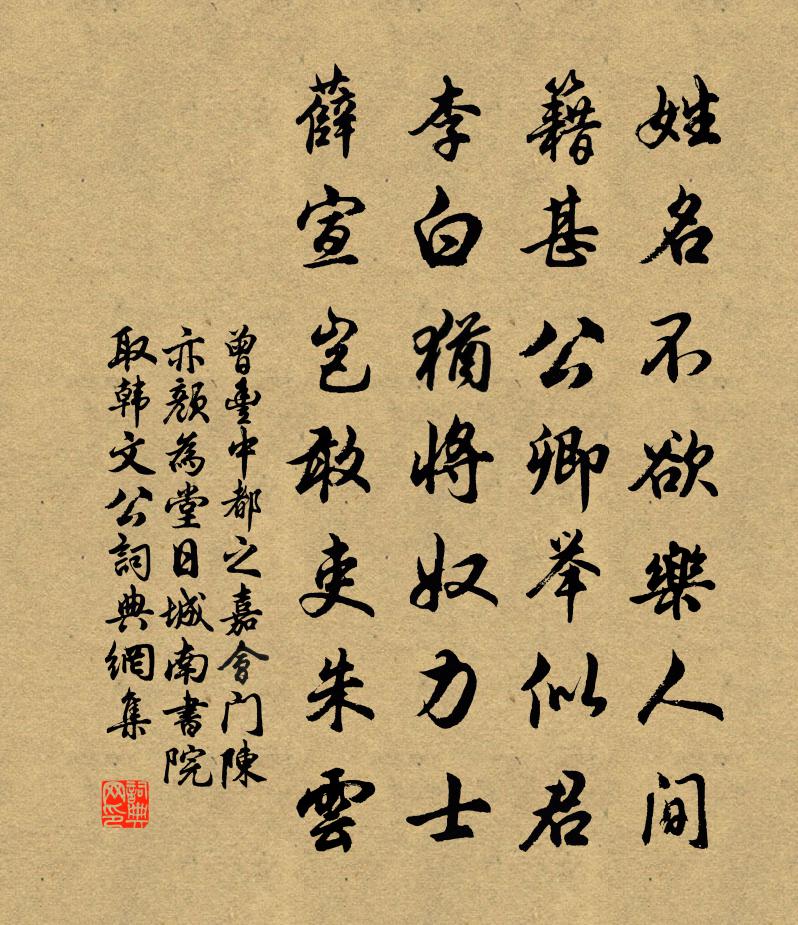 詩詞名句歷史字典書法欣賞書法字典國語詞典說文解字康熙字典古漢語字典標 題 作 者 詩 句 中都之嘉會門陳亦顏為堂日城南書院取韓文公作者:曾豐 朝代:宋代原文姓名不欲樂人間,籍甚公卿舉似君。李白猶將奴力士,薛宣豈敢吏朱雲。詩詞問答問:《中都之嘉會門陳亦顏為堂日城南書院取韓文公》的作者是誰?答:曾豐問:該詩寫於哪個朝代?答:宋代書法欣賞中都之嘉會門陳亦顏為堂日城南書院取韓文公書法作品詩文賞析【原題】:中都之嘉會門陳亦顏為堂日城南書院取韓文公符讀書意也四首詩詞推薦醜奴兒/採桑子宋先生〔宋代〕河車怎敢停留住,搬入泥丸。水火烹煎。一粒丹砂鍊汞鉛。金丹大藥人人有,只要心堅。休說閒言。不走陽精便是次石湖書扇韻姜夔〔宋代〕橋西一水曲通村,岸閣浮萍綠有痕。家住石湖人不到,藕花多處別開門。送吳晦叔赴廷試李呂〔宋代〕我昔游白鶴,山川氣雄深。邂逅識吾子,戛然唳孤音。日日望飛鳴,洄洑乃至今。玉美出堅璞,木老生喬林。書生荼蘼方岳〔宋代〕手插春風十萬條,野香落絮玉搖搖。黃鸝莫誤看花眼,等得南薰雪未消。青龍師安上人司空圖〔唐代〕災曜偏臨許國人,雨中衰菊病中身。清香一炷知師意,應為昭陵惜老臣。送韓都護還邊盧綸〔唐代〕好勇知名早,爭雄上將間。戰多春入塞,獵慣夜登山。陣合龍蛇動,軍移草木閒。今來部曲盡,白首過蕭關。雜詠一百首王通劉克莊〔宋代〕當時三晉地,已有聖人生。不曉河汾氏,為隋策太平。再作答徐天隱黃庭堅〔宋代〕建德真樂國,萬里渺中州。除盪俗氛盡,心如九天秋。滿船載明月,乃可與同游。平生期斯人,共挾風雅輈。定知中秋夜玩月唐彥謙〔唐代〕一夜高樓萬景奇,碧天無際水無涯。只留皎月當層漢,並送浮雲出四維。霧靜不容玄豹隱,冰生惟恐夏蟲疑。坐來終南山雙峰草堂作岑參〔唐代〕斂跡歸山田,息心謝時輩。晝還草堂臥,但與雙峰對。興來恣佳游,事愜符勝概。著書高窗下,日夕見城內。曩為慶陸仁重舉男四首方回〔宋代〕治郡年才半買臣,青春天上送麒麟。鼎來好事由陰德,曾活澄江十萬人。浣溪沙姚述堯〔宋代〕與客相從謁謝公。芝田絳節擁仙翁。數枝桃杏斗香紅。醉眼斜拖春水綠,黛眉低拂遠山濃。此情都在酒杯中。浪淘沙(寄劍閣)善珍〔宋代〕相對兩衰翁。身似枯蓬。分飛吹聚謝天風。零落交遊無一個,五十年中。生客語藏鋒。不答陽聾。心期難話與兒童奉和嚴司空重陽日同崔常侍崔郎中…登龍山落帽台佳宴元稹〔唐代〕謝公愁思眇天涯,蠟屐登高為菊花。貴重近臣光綺席,笑憐從事落烏紗。萸房暗綻紅珠朵,茗碗寒供白露芽。詠碎至華子嶺初見黃山天都峰李彌遜〔宋代〕華子嶺頭雲盪胸,秋高木落萬山重,巨靈擘石分南北,扶出天都第一峰。秋日與張賓客舒著作同游龍門醉中狂歌凡二百三十八字白居易〔唐代〕秋天高高秋光清,秋風裊裊秋蟲鳴。嵩峰餘霞錦綺卷,伊水細浪鱗甲生。洛陽閒客知無數,少出遊山多在城。商嶺送人遊吳杜荀鶴〔唐代〕君到姑蘇見,人家盡枕河。古宮閒地少,水巷小橋多。夜市賣菱藕,春船載綺羅。 遙知未眠月,鄉思在漁歌。 送別李毅高宣教葉適〔宋代〕堪嘆媧皇六葉孫,直將豪武蓋諸昆。黃金散盡身如寄,閒管春風白下門。新歲陸游〔宋代〕風入鞭梢緊,春從草色深。山坡臥新犢,園木轉幽禽。勳業少年夢,關河遊子心。爾來都掃盡,濁酒帶醅斟。法華寺石門精舍三十韻柳宗元〔唐代〕拘情病幽郁,曠志寄高爽。願言懷名緇,東峰旦夕仰。始欣雲雨霽,尤悅草木長。道同有愛弟,披拂恣心賞。松谿名句推薦中夜四五嘆,常為大國憂。李白《經亂離後天恩流夜郎憶舊遊書懷贈江夏韋太守良宰》 拱木不生危,松柏不生埤。左丘明《國語·晉語·醫和視平公疾》 三年羈旅客,今日又南冠。夏完淳《別雲間》 君若清路塵,妾若濁水泥;曹植《明月上高樓》 黃河水,水闊無邊深無底,其來不知幾千里。貢泰父《黃河行》 天秋日正中,水碧無塵埃。柳宗元《湘口館瀟湘二水所會》 思量舊夢,黃梅聽雨,危闌倦倚鄧廷楨《水龍吟·雪中登大觀亭》 借錢塘潮汐,為君洗盡,岳將軍淚!陳德武《水龍吟·西湖懷古》 歸師勿掩,窮寇莫追。羅貫中《三國演義·第九十五回》 興盡晚回舟,誤入藕花深處。李清照《如夢令·常記溪亭日暮》