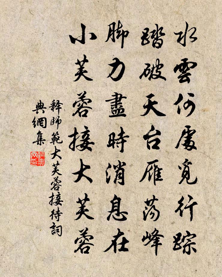 詩詞名句歷史字典書法欣賞書法字典國語詞典說文解字康熙字典古漢語字典標 題 作 者 詩 句 大芙蓉接待作者:釋師範 朝代:宋代大芙蓉接待原文水云何處覓行蹤,踏破天台雁盪峰。腳力盡時訊息在,小芙蓉接大芙蓉。詩詞問答問:大芙蓉接待的作者是誰?答:釋師範問:大芙蓉接待寫於哪個朝代?答:宋代釋師範大芙蓉接待書法欣賞大芙蓉接待書法作品詩詞推薦月中仙王吉昌〔元代〕志士窮元,派浮沉動靜,體用分別。神初象客,藉氤氳為主,應時提挈。杖頭挑日月,斡天地、推移氣泄。北斗南登千峰榭陸游〔宋代〕飛觀危欄縹緲中,聊將醉眼送歸鴻。一生未售屠龍技,萬里猶思汗馬功。王衍諸人寧足責,姜維豎子自應窮。他年新定感興五首范仲淹〔宋代〕江上多嘉客,清歌進白醪。靈均良可笑,終日著離騷。省試日上崔侍郎四首劉得仁〔唐代〕衣上年年淚血痕,只將懷抱訴乾坤。如今主聖臣賢日,豈致人間一物冤。如病如痴二十秋,求名難得又難休。回看從德麟自中盧游靈記事李廌〔宋代〕裂崖泉射便成溪,溪畔虛岩匹練垂。玉濺珠跳千仞底,陰陰眾木媚清池。禁林讌會之什呂祐之〔宋代〕高會蓬瀛振德音,崇賢同慶湛恩深。瑞融雲露飛宸翰,榮下煙霄飾禁林。鳳藻環奇清擊石,龍文模琢麗雕金。辭臣代人挽妻父號道者李呂〔宋代〕里閈推高足善良,不才何幸玷東床。修容方喜超賓館,奠雁翻成舉酹觴。晚鐸飄聲空有恨,酸風吹淚不成行。諸郎偈傾一百三十三首釋法薰〔宋代〕坦老勾賊破家,羅山就窠打劫。勘證將來,未免髑髏敲磕。柏庭永和尚出世天禧以頌寄之釋崇岳〔宋代〕林下相從知幾年,好因緣是惡因緣。雖然不受靈山記,鼻孔依前著那邊。寄友人張孝忠上官藻〔宋代〕瀟瀟落葉滿江城,冽地金風變世情。無日不傷車北波,有書難寄雁南征。曉霜滿地歸心切,夜月懸樑夢不成。渴望扇子詩李石〔宋代〕功德海中遊戲,菩提樹下清涼。只有登山一醉,嘯聲分會孫郎。贈史文通奉議二首蘇轍〔宋代〕牆北史居士,掛冠心轉閒。頂開人共怪,神去夜深還。白雪微侵鬢,丹砂久駐顏。從君欲問道,何日徑開關。於王撫軍座送客陶淵明〔魏晉〕秋日淒且厲,百卉具已腓。爰以履霜節,登高餞將歸。寒氣冒山澤,游雲倏無依。洲渚四緬邈,風水互乖違。瞻夕黃州上已和王子方雪堂韻李曾伯〔宋代〕五年安出處,斯道系污隆。血指笑餘子,頭顱老此公。屋樑懸落月,花卉帶香風。生氣鎮長在,大江流不窮。訪原仲劉子翬〔宋代〕布及自昔有遺才,白首窮經隱澗隈。門掩青山朝暮色,客來濁酒兩三杯。鴻冥豈復驚塵網,鶚薦虛聞達帝台。我亦忘憂堂文同〔宋代〕磴道循城近,垣牆占地幽。軒窗誰指畫,硯席我優遊。不許簿書到,恐為圖史羞。此心元自適,何處欲忘憂。在金日作宇文虛中〔金代〕遙夜沉沉滿幕霜,有時歸夢到家鄉。傳聞已筑西河館,自許能肥北海羊。回首兩朝俱草莽,馳心萬里絕農桑。人生小絕句張埴〔宋代〕解貂換美酒,半與美人醉。留半伴山翁,夜深談世事。答頤齋詩筒走寄胡仲弓〔宋代〕綠陰團里和吟聲,幽事相關雨未晴。莫把越秦分異見,要知李杜是同盟。提壺沽酒牆頭報,布穀催耕屋背鳴。滿目又一首答二猶子與王郎見和蘇軾〔宋代〕脯青苔,炙青蒲,爛蒸鵝鴨乃瓠壺。煮豆作乳脂為酥,高燒油燭斟蜜酒,貧家百物初何有。古來百巧出窮人,搜羅名句推薦天若不愛酒,酒星不在天。李白《月下獨酌四首》 秋風生渭水,落葉滿長安。賈島《憶江上吳處士》 綠樹暗長亭,幾把離尊,陽關常恨不堪聞。陸游《浪淘沙·丹陽浮玉亭席上作》 小樓一夜聽春雨,深巷明朝賣杏花。陸游《臨安春雨初霽》 清漏漸移相望久,微雲未接過來遲。李商隱《辛未七夕》 天地生君子,君子理天地。荀子《荀子·王制》 又是春將暮,無語對斜陽。葛長庚《水調歌頭·江上春山遠》 故人具雞黍,邀我至田家。孟浩然《過故人莊》 我本不棄世,世人自棄我。李白《送蔡山人》 春思亂,芳心碎。惠洪《千秋歲·半身屏外》