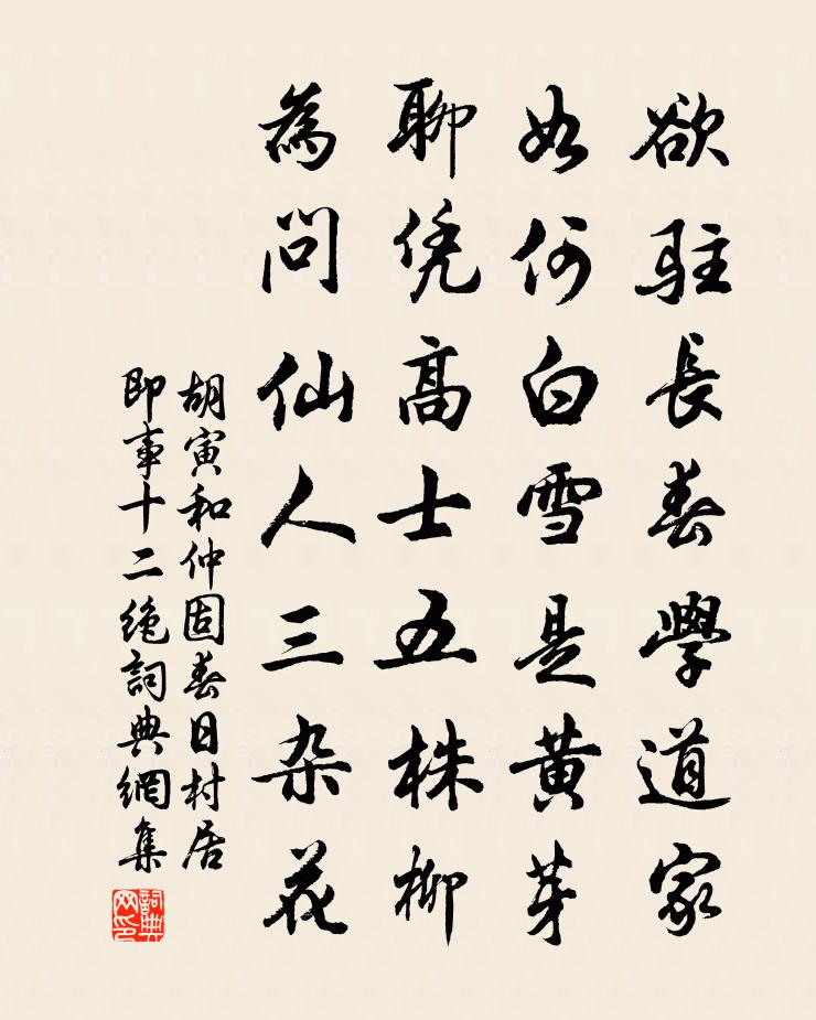 詩詞名句歷史字典書法欣賞書法字典國語詞典說文解字康熙字典古漢語字典標 題 作 者 詩 句 和仲固春日村居即事十二絕作者:胡寅 朝代:宋代和仲固春日村居即事十二絕原文欲駐長春學道家,如何白雪是黃芽。聊憑高士五株柳,為問仙人三雜花。詩詞問答問:和仲固春日村居即事十二絕的作者是誰?答:胡寅問:和仲固春日村居即事十二絕寫於哪個朝代?答:宋代胡寅和仲固春日村居即事十二絕書法欣賞和仲固春日村居即事十二絕書法作品詩詞推薦金剛隨機無盡頌不受不貪分第二十八釋印肅〔宋代〕古今人易老,無異霜凋草。本根依舊青,不解尋元討。蒙恩易鎮豫章丐假還鄉途中偶成十七首吳芾〔宋代〕茲嶺別二年,今朝又重過。過了環復來,袁哉蟻旋磨。三登樂范成大〔宋代〕方帽衛寒,重檢校、舊時農圃。荒三徑、不知何許。但姑蘇台下,有蒼然平楚。人笑此翁,又來訪古。況五湖、元鷓鴣天 集句趙可〔元代〕十頃平波溢岸清。草香沙暖水雲晴。輕衫短帽垂楊里,楚潤相看別有情。揮彩筆,倒銀瓶。花枝照眼句還成。老來嶺上逢久別者又別權德輿〔唐代〕十年曾一別,征路此相逢。馬首向何處,夕陽千萬峰。新昌詠歸陳傅良〔宋代〕回頭三十二年非,木落霜空水見涯。萬事自憐多譽早,半生猶幸一官遲。好將翰墨付儕輩,去與漁樵相爾誰。還有歲旦立春張鎡〔宋代〕天心歷數本相同,何事偏窺造化功。蒼震欲承乾健力,歲端春肇一時中。枕峰寺劉克莊〔宋代〕夜深投寺解行裝,一點寒燈照上方。老宿問余何處去,年年來此借禪床。寄湯伯紀侍郎二首劉克莊〔宋代〕仗下鳴曾驚眾聽,省中語不願人傳。騷留屈子芳菲在,史視胡公糞土然。士到後凋方見節,世除勇退別無仙。遙知知常委順辭晃逈〔宋代〕紛然往事來,浮雲經大空。喧然是非聲,驚飈觸灌叢。古今無奈何,委順於其中。閘上 其一王冕〔元代〕舒嘯孤懷壯,天風盪杳冥。草枯秦地白,雲盡魯山青。聞道尊莊子,沽杯候野亭。平生辛苦事,須信此行經。答微之白居易〔唐代〕君寫我詩盈寺壁,我題君句滿屏風。與君相遇知何處,兩葉浮萍大海中。棖子歐陽修〔宋代〕嘉樹團團俯可攀,壓枝秋實漸斕斑。朱欄碧瓦清霜曉,粲粲繁星綠葉間。訴衷情(五之二)王安石〔宋代〕練巾藜杖白雲間。有興即躋攀。追思往昔如夢,華轂也曾丹。塵自擾,性長閒。更無還。達如周召,窮似丘軻,祗武陵春晏幾道〔宋代〕煙柳長堤知幾曲,一曲一魂消。秋水無情天共遙,愁送木蘭橈。薰香繡被心情懶,期信轉迢迢。記得來時倚畫橋,此君室方蒙仲〔宋代〕直節立人懦,清標爽吾惛。豈不益友哉,人中田承君。雁和彥山韻趙時韶〔宋代〕叫月聲聲到枕兒,稻粱雖飽豈能肥。夜深且傍瀟湘宿,明日晴空萬里飛。夜登甘露山二首劉克莊〔宋代〕月落宿禽起,幽人殊未回。不知何處磬,迢遞過山來。解連環(戊午生日)劉克莊〔宋代〕旁人嘲我。甚鬢毛都禿,齒牙頻墮。不記是、何代何年,盡元祐熙寧,儂常喑麽。退下驢兒,今老矣、豈堪推磨。贈訥行人陳允平〔宋代〕諸方參請盡,秋晚別京畿。乞食齋條飽。隨緣百念微。夜聲鳴鐵笛,寒色脆荷衣。久學南山律,終身不敢違。名句推薦夢裡不知身是客,一晌貪歡。李煜《浪淘沙令·簾外雨潺潺》 龍蛇四海歸無所,寒食年年愴客心。屈大均《壬戌清明作》 勸君莫惜花前醉,今年花謝,明年花謝,白了人頭。趙秉文《青杏兒·風雨替花愁》 遲日江山麗,春風花草香。杜甫《絕句二首》 澗影見松竹,潭香聞芰荷。孟浩然《夏日浮舟過陳大水亭 / 浮舟過滕逸人別業》 畫棟朝飛南浦雲,珠簾暮卷西山雨。王勃《滕王閣詩》 戍鼓斷人行,邊秋一雁聲。杜甫《月夜憶舍弟》 朝雲亂人目,帝女湘川宿。吳均《登二妃廟》 松月生夜涼,風泉滿清聽。孟浩然《宿業師山房期丁大不至 / 宿業師山房待丁大不至》 渡口雙雙飛白鳥,煙裊,蘆花深處隱漁歌。閻選《定風波·江水沉沉帆影過》