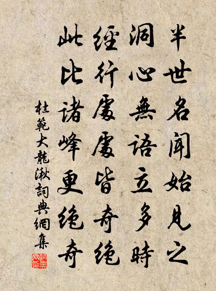 詩詞名句歷史字典書法欣賞書法字典國語詞典說文解字康熙字典古漢語字典標 題 作 者 詩 句 大龍湫作者:杜范 朝代:宋代大龍湫原文半世名聞始見之,洞心無語立多時。經行處處皆奇絕,此比諸峰更絕奇。詩詞問答問:大龍湫的作者是誰?答:杜范問:大龍湫寫於哪個朝代?答:宋代杜范大龍湫書法欣賞大龍湫書法作品詩詞推薦仆為虛谷先生作玉豹馬先生有時見酬極筆勢之龔開〔宋代〕南山有雄豹,隱霧成變化。奇姿驚世人,毛物亦增價。天上房星浥瑞光,孕成白馬而黑章。為誰容易來中國,風雪自贊釋普濟〔宋代〕出林虎方怒,橫岡蟒正嗔。世無途路客,終是不傷人。望湖方回〔宋代〕涌金樓下路,小艇尚堪呼。衰疾吾如此,湖山了不殊。興亡忽今昔,紅綠自蓮蒲。近說遷漁戶,窮鱗氣稍蘇。偶賦姜特立〔宋代〕勇退知幾自古難,人情宦路險於山。勸君休唱眉間曲,放我山中自在閒。過終南柳處士盧綸〔唐代〕五老正相尋,圍棋到煮金。石摧丹井閉,月過洞門深。猿鳥三時下,藤蘿十里陰。綠泉多草氣,青壁少花林。自愧青雲驛元稹〔唐代〕岧嶢青雲嶺,下有千仞谿。裴回不可上,人倦馬亦嘶。願登 * ,若望丹霞梯。謂言青雲驛,繡戶芙蓉閨。謂言丹陽湖阻風二首王之道〔宋代〕老去心猶壯,詩成喜欲顛。時危思報主,窮極待呼天。歸夢先湖外,離情到酒邊。晚來風更惡,舟臥不成眠。湖州朝陽樓吳融〔唐代〕十二亭亭占曉光,隋家浪說有迷藏。仲宣題盡平生恨,別處應難看屋樑。重遊長真寺戴叔倫〔唐代〕同到長真寺,青山四面同。鳥啼花竹暗,人散戶庭空。蒲澗千年雨,松門午夜風。舊遊悲往日,回首各西東。開東園路北至山腳因治路傍隙地雜植花草陸游〔宋代〕清溝東畔翦蓁菅,雖設柴門盡日關。遠引寒泉成碧沼,稍通密竹露青山。幽花泣露開仍落,好鳥穿林去復還。更上渡汝水向太和山皇甫冉〔唐代〕落日事搴陟,西南投一峰。誠知秋水淺,但怯無人蹤。偈十首釋慧暉〔宋代〕正偏融融而路斷於鳥道之表,君臣堂堂而容儼於玉殿之中。到底難說,妙處絕同。別得傍道,見萬年松。水調歌頭·江上春山遠葛長庚〔宋代〕江上春山遠,山下暮雲長。相留相送,時見雙燕語風檣。滿目飛花萬點,回首故人千里,把酒沃愁腸。回雁峰前路偶書呈雪溪葛守正車若水〔宋代〕秦埃幻六籍,斯文天地屯。詝言嘈萬喙,渺不游其津。作者能幾何,落落星已晨。單其千載傳,覷斑尤苦辛。毫芒甲午社日客桂林樂雷發〔宋代〕卮酒豚蹄客里歡,石尤風系枲衣單。東陽病骨如鸚鵡,最怯南州社日寒。頌古三十八首釋慧方〔宋代〕善財拈起一枝草,持來度與文殊老。殺活雖然在手中,遍界不藏光杲杲。寄錢唐觀音朋山主釋重顯〔宋代〕遠念依依闕附書,還同秋水淡相於。沖雲況是曾無定,幾掩寒蟾出太虛。許秀才至辱李蘄州絕句問斷酒之情因寄杜牧〔唐代〕有客南來話所思,故人遙枉醉中詩。暫因微疾須防酒,不是歡情減舊時。點絳唇寇準〔宋代〕水陌輕寒,社公雨足東風慢。定巢新燕。濕雨穿花轉。象尺熏爐,拂曉停針線。愁蛾淺。飛紅零亂。側臥珠簾卷。妾薄命鄭清之〔宋代〕妾有花一片心,花奚啻金與石。金石尚可磨,此心終不易。妾有金錯刀,不買珠與翠。一笑向尊前,願買郎心醉。名句推薦行行無別語,只道早還鄉。袁凱《京師得家書》 念去來、歲月如流,徘徊久、嘆息愁思盈。周邦彥《綺寮怨·上馬人扶殘醉》 興盡晚回舟,誤入藕花深處。李清照《如夢令·常記溪亭日暮》 浮天滄海遠,去世法舟輕。錢起《送僧歸日本》 君子以鐘鼓道志,以琴瑟樂心。荀子《荀子·樂論》 帝里重清明,人心自愁思。孟浩然《清明即事》 一尺深紅勝麴塵,天生舊物不如新。溫庭筠《南歌子詞二首 / 新添聲楊柳枝詞》 不言之教,無為之益,天下希及之。老子《老子·德經·第四十三章》 去來江口守空船,繞船月明江水寒。白居易《琵琶行 / 琵琶引》 父子之嚴,不可以狎;骨肉之愛,不可以簡。顏之推《顏氏家訓·教子篇》