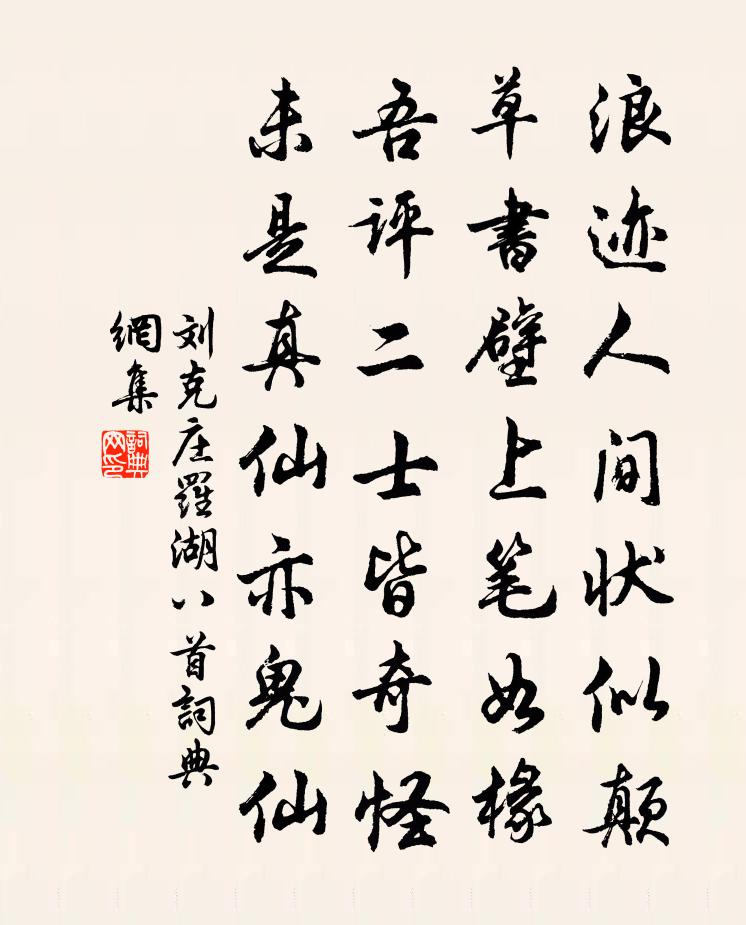 詩詞名句歷史字典書法欣賞書法字典國語詞典說文解字康熙字典古漢語字典標 題 作 者 詩 句 羅湖八首作者:劉克莊 朝代:宋代羅湖八首原文浪跡人間狀似顛,草書壁上筆如椽。吾評二士皆奇怪,未是真仙亦鬼仙。詩詞問答問:羅湖八首的作者是誰?答:劉克莊問:羅湖八首寫於哪個朝代?答:宋代問:劉克莊的名句有哪些?答:劉克莊名句大全劉克莊羅湖八首書法欣賞羅湖八首書法作品詩詞推薦溪翁釋文珦〔宋代〕青山映溪三十里,水中白石何齒齒。是非不入溪翁耳,生涯只在清溪里。終日磯頭坐碧藟,釣絲入潭魚唯唯。得魚次日醉歸楊萬里〔宋代〕日晚頗欲歸,主人若見留。我非不能飲,老病怪觥籌。人意不可違,欲去且復休。我醉彼自止,醉亦何足愁。歸路山中奉寄通判楊宗博二首岳珂〔宋代〕多病山中客,無人傍酒缸。與猨分橡子,為鹿長禾孫。白晝雲歸屋,黃昏雨打門。忽懷楊司馬,煙靄隔重閽。夜泊陳允平〔宋代〕停舟野渡頭,客路恨悠悠。葉落風千樹,種殘月半樓。蘆花雙過雁,莎草獨眠鷗。山鬼燒青火,飛來照髑髏。春帖子詞皇后閣十首宋祁〔宋代〕宮裡春花才灼灼,殿前春仗已峨峨。東風盡解天池凍,不及君王慶澤多。奉和李大夫題新詩二首各六韻忘筌亭白居易〔唐代〕翠巘公門對,朱軒野徑連。只開新戶牖,不改舊風煙。虛室閒生白,高情澹入玄。酒容同座勸,詩借屬城傳。自笑睡起遣懷陸游〔宋代〕百事不能能荷鋤,不鋤菜畦鋤芋區;身存那用十年相,陂壤且為凶歲儲。百事不學學作詩,不作白紵作竹枝;黃陵春日懷淮陽六首張耒〔宋代〕西城門外古壕清,太昊祠前春草生。早晚粗酬身計了,長為閒客此間行。山居雜詩九十首曹勛〔宋代〕露蜂綴林薄,土蜂翔戶內。飛繞旬日閒,穿穴皆其類。眾聲互起息,哄然自闤闠。螫幼成腫毒,居閒視其未。寄從弟善邱和〔宋代〕海上扶桑散曉暉,荷衣共喜換蓑衣。浮雲天外弄濃淡,好趁輕陰未雨歸。答客問黎廷瑞〔宋代〕錫號翛閒客,山中管白雲。自稱前進士,人喚故參軍。花影供吟課,茶香策睡勛。客來談外事,去去不煩君。句吳沆〔宋代〕燕忙將入夏,蠶暖正眠春。和樂天早寒劉禹錫〔唐代〕雨引苔侵壁,風驅葉擁階。久留閒客話,宿請老僧齋。酒瓮新陳接,書籤次第排。翛然自有處,搖落不傷懷。望江南(池陽道中)李綱〔宋代〕歸去客,迂騎過江鄉。茅店雞聲寒逗月,板橋人跡曉凝霜。一望楚天長。春信早,山路野梅香。映水酒帘斜揚日,慶宮春 送袁仲野歸紹興朱唏顏〔元代〕彩筆傳歌,青衫提劍,幕中誰似風流。使檄聯芳,賓筵接武,後塵每繼清游。曉雲春夢,試回首、星霜再周。仙曹和人歲暮書懷張舜民〔宋代〕星回律變數將終,二十年前此邑中。天令尚隨新歲改,人顏那得舊時紅。家無妻妾仍多難,腹有詩書可屢空。莫笑點絳唇 春夢吳存〔元代〕多事春風,年年綠遍江南草。羅裙色好。莫把相如惱。夢入瑤台,搔背 * 爪。還驚覺。杜鵑啼早。一夜相思老。教繩權學書偶成黃庶〔宋代〕文字有緣曾弄墨,見來官小免咨嗟。喜將筆硯傳生計,不失詩書作世家。字識姓名能指點,寫因梨栗不傾斜。著鞭西州詞(吳聲)溫庭筠〔唐代〕悠悠復悠悠,昨日下西州。西州風色好,遙見武昌樓。武昌何鬱郁,儂家定無匹。小婦被流黃,登樓撫瑤瑟。朱弦荷池觀魚楊萬里〔宋代〕截山剜沼貯泉流,旋種儵魚絕善游。細數未齊還已亂,群嬉半沒忽全浮。荷錢荇帶來復去,雪片銀花稀卻稠。我樂名句推薦夫君子之行,靜以修身,儉以養德。諸葛亮《誡子書》 福善之門莫美於和睦,患咎之首莫大於內離。班固《漢書·傳·宣元六王傳》 直道相思了無益,未妨惆悵是清狂。李商隱《無題·重幃深下莫愁堂》 萬壑樹參天,千山響杜鵑。王維《送梓州李使君》 良農不為水旱不耕,良賈不為折閱不市。荀子《荀子·修身》 待羔兒、酒罷又烹茶,揚州鶴。辛棄疾《滿江紅·和范先之雪》 誰言千里自今夕,離夢杳如關塞長。薛濤《送友人》 更被夕陽江岸上,斷腸煙柳一絲絲。韋莊《江外思鄉》 十年一覺揚州夢,贏得青樓薄倖名。杜牧《遣懷》 千年忠義氣,日星光。離騷讀罷總堪傷。舒頔《小重山·端午》