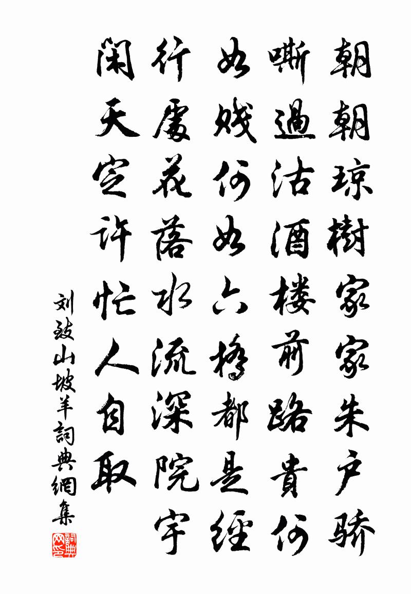 詩詞名句歷史字典書法欣賞書法字典國語詞典說文解字康熙字典古漢語字典標 題 作 者 詩 句 山坡羊作者:劉致 朝代:元代山坡羊原文朝朝瓊樹,家家朱戶,驕嘶過沽酒樓前路。貴何如,賤何如?六橋都是經行處,花落水流深院宇。閒,天定許;忙,人自取。詩詞問答問:山坡羊的作者是誰?答:劉致問:山坡羊寫於哪個朝代?答:元代問:山坡羊是什麼體裁?答:散曲劉致山坡羊書法欣賞山坡羊書法作品詩詞推薦守歲項安世〔宋代〕人情憐舊復憐新,擾擾通宵雜笑嚬。炷蠟煎膏留漏箭,賣椒沽酒辨廚珍。一聲竹里千家曉,百和香中九陌春。莫道頌石頭和尚草庵歌釋印肅〔宋代〕衲被蒙頭萬事休,九年面壁為迷流。神光斷擘何希有,薩埵投崖飼虎求。生查子(己示八月二日四明窗和韻)吳潛〔宋代〕坐臨芳沼邊,荷氣侵衣濕。唧唧暗蛩鳴,點點流螢入。人生歧路中,底用楊朱泣。一笑倚闌乾,頹玉當風立。丹山酒邊陳著〔宋代〕衰老受晴光,相攜到上方。意濃忘酒薄,話美奪塵忙。天竹靜逾媚,溪梅初有香。危時正多事,半日太平鄉。題梅山雲悅樓羅永之〔宋代〕曾讀楊詩識懶雲,只今雲悅即雲孫。龍無怒色常歸匣,鶴有懽顏獨守門。春態樂尋吟客伴,心閒喜共野人言。要知丙辰年別龜峰曹源和尚釋道沖〔宋代〕破袱從東挾過西,何時再上惡鉗鎚。怒雷一吼聾三日,自有怨憎會苦時。門有萬里客曹植〔魏晉〕門有萬里客。問君何鄉人。褰裳起從之。果得心所親。挽裳對我泣。太息前自陳。本是朔方士。今為吳越民。行行到西山懷趙景文似諸孤陳著〔宋代〕山屋著孤嫠,採薇人更誰。寒鐙長夜影,春帖去年詩。後死只多感,獨來能幾時。願言相勸學,西席佇賢師。除夜樂城逢張少府孟浩然〔唐代〕雲海泛甌閩,風潮泊島濱。何知歲除夜,得見故鄉親。余是乘槎客,君為失路人。平生復能幾,一別十餘春。賜劉輝及第宋仁宗〔宋代〕治世求才重,公朝校藝精。臨軒升造士,入彀得群英。並躡雲梯峻,聯登桂籍榮。庇民思善政,慈惠體予情。古詩贈相士吳楚峰謝枋得〔宋代〕世亂異人出,高者為神仙。方術皆救世,可知愚與賢。喜君風鑑別,妙處不可傳。著眼看福人,要識太平年。贈崔侍郎李白〔唐代〕黃河二尺鯉,本在孟津居。點額不成龍,歸來伴凡魚。故人東海客,一見借吹噓。風濤倘相見,更欲凌昆墟。秋夜講解詩謝朓〔南北朝〕四緣去誰肇。七識習未央。沉沉倒營魄。苦蔭蹙愁腸。琴瑟徒爛熳。姱容空滿堂。春顏遽幾日。秋壟終茫茫。孰雲次韻晁元忠西歸十首黃庭堅〔宋代〕麗姬封人子,弄影愛朝日。晉國始得之,泣涕甘首疾。憂危與安樂,一生誰能必。同床食芻豢,乃悔沾襟失。游洞霄周文璞〔宋代〕天柱青峨峨,石筍危不墮。晃晃銀雲收,誰子開玉鎖。崩騰放閘水,煜爚入洞火。神境偕靈休,乃欲搜碎瑣。愧彼公子行劉希夷〔唐代〕天津橋下陽春水,天津橋上繁華子。馬聲回合青雲外,人影動搖綠波里。綠波蕩漾玉為砂,青雲離披錦作霞。可憐水調歌頭 慶壽周權〔元代〕天上有仙客,家世說南州。精神炯炯秋水,胸次納青丘。帶取括蒼風月,來聽蓬萊環佩,笑閱幾春秋。袖有如椽筆端午帖子九首曹勛〔宋代〕辟兵龍印篆神經,系臂香縈繡色輕。自有微涼生玉宇,池光靜照午陰清。釣雪亭姜夔〔宋代〕闌乾風冷雪漫漫,惆悵無人把釣竿。時有官船橋畔過,白鷗飛去落前灘。黃瓜乾隆〔清代〕菜盤佳品最燕京,二月嘗新豈定評。壓架綴籬偏有致,田家風景繪真情。名句推薦秋草六朝寒,花雨空壇。朱彝尊《賣花聲·雨花台》 人閒桂花落,夜靜春山空。王維《鳥鳴澗》 愁顏與衰鬢,明日又逢春。戴叔倫《除夜宿石頭驛》 欲將心事付瑤琴。岳飛《小重山·昨夜寒蛩不住鳴》 余亦赴京國,何當獻凱還。孟浩然《送陳七赴西軍》 晚雲都變露,新月初學扇,塞鴻一字來如線。周德清《塞鴻秋·潯陽即景》 朝辭白帝彩雲間,千里江陵一日還。李白《早發白帝城 / 白帝下江陵》 自別後遙山隱隱,更那堪遠水粼粼。王實甫《十二月過堯民歌·別情》 用兵之道,先勝後戰。陳壽《三國志·魏書·荀彧攸賈詡傳》 窗含西嶺千秋雪,門泊東吳萬里船。杜甫《絕句》