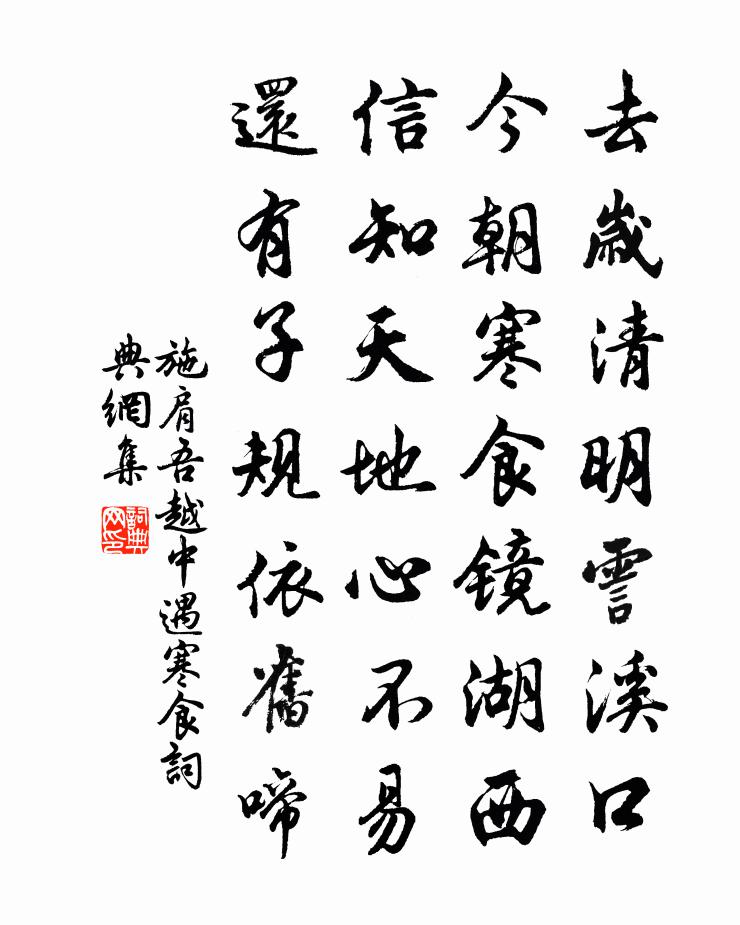 詩詞名句歷史字典書法欣賞書法字典國語詞典說文解字康熙字典古漢語字典標 題 作 者 詩 句 越中遇寒食作者:施肩吾 朝代:唐代越中遇寒食原文去歲清明霅溪口,今朝寒食鏡湖西。信知天地心不易,還有子規依舊啼。詩詞問答問:越中遇寒食的作者是誰?答:施肩吾問:越中遇寒食寫於哪個朝代?答:唐代問:越中遇寒食是什麼體裁?答:七絕施肩吾越中遇寒食書法欣賞越中遇寒食書法作品注釋全唐詩:卷494-94詩詞推薦次韻晁元忠西歸十首黃庭堅〔宋代〕前有熊羆咆,後有虎豹號。已出澗谷底,更陟山阪高。五日一併食,十年一縕袍。未知歸宿處,豈憚鞍馬勞。甲午春前得雪尤袤〔宋代〕飛英迴旋逐風飄,爽氣令人意欲消。荏苒流年春送臘,殷勤密雪暮連朝。冬回庾嶺花無數,煙暖藍田玉有苗。一飽盤墅登三清閣黃由〔宋代〕才到松陵即是家,三清閣下寂無嘩。小臣愧乏絲毫報,深炷爐香靜點茶。上高息軒起亭二絕蘇轍〔宋代〕山下清溪溪上市,溪光山色映人煙。幽亭正在人聲里,長與溪山共寂然。溪父起收罾下鯉,山翁起賣焙中茶。長官滿江紅衛宗武〔宋代〕屑玉飛霙,正堪稱、馮夷展布。空幾度、痴雲凝聚,狂風掀舞。點點拋揚珠作霰,纖纖斷續絲垂雨。借銀河、翦刻題劉相公光德里新構茅亭李洞〔唐代〕野色迷亭曉,龍墀待押班。帶涎移海木,兼雪寫湖山。月白吟床冷,河清直印閒。唐封三萬里,人偃翠微間。宿府池西亭白居易〔唐代〕池上平橋橋下亭,夜深睡覺上橋行。白頭老尹重來宿,十五年前舊月明。蒼嶺行三首葛紹體〔宋代〕翠擁層崖一水分,括蒼遙接赤城春。觀音城上靈官廟,多少燒香行路人。頌古一百則釋正覺〔宋代〕作賊心,過人膽,歷歷縱橫對機感。保福雲門也垂鼻欺唇,翠岩長慶也修眉映眼。杜禪和,有何限,剛道意句一齊汪直卿相招以病爽約因成拙句並呈子大王炎〔宋代〕一聲鶗鴃落紅稀,試問春余幾許時。多謝佳招頻卜日,自慚衰配卻愆期。但能有酒肯留客,莫恨無花空折枝。邑下三月晦日贈劉評事 / 三月晦日送春賈島〔唐代〕三月正當三十日,風光別我苦吟身。共君今夜不須睡,未到曉鍾猶是春。擬和御製賞花釣魚王安石〔宋代〕雲暖蓬萊日,風酣太液春。水光承步輦,花氣入釣陳。伏檻留清蹕,傳觴屬從臣。霏香連釣餌,落葉亂游鱗。鎬飲偈頌十九首釋紹曇〔宋代〕綠蘿深處臥雲煙,獨戰蠻征事悄然。臨老無端重出醜,借婆裙子拜婆年。贈日者楊應齋徐元傑〔宋代〕爛柯山客命能知,人事更番一局棋。甜卦易窮行苦卦,此時相語驗他時。窮通任理胡不可,災福緣人要自持。我老清書張玉孃〔宋代〕書靜春偏遠,詩成與轉賖。看山憑書閣,問竹過遴家。摘翠間驚鳥,燒煙曉煮茶。無端雙蛺蝶,遠袖錯尋花。挺山道中早行有感二首強至〔宋代〕晨興事行役,寸祿此時輕。撲面風霜緊,隔林雞犬鳴。遙天分淡色,殘月露微明。便欲投簪去,無田可力耕。偷聲木蘭花(仙呂調)張先〔宋代〕雪籠瓊苑梅花瘦。外院重扉聯寶獸。海月新生。上得高樓無奈情。簾波不動凝釭小。今夜夜長爭得曉。欲夢高唐。雲庵覓詩陳藻〔宋代〕百級危階上翠巒,四邊山色自低環。海鄉無限蕭條景,收到樓前是美觀。和晦庵壁間韻陳宓〔宋代〕著壁驪珠五月寒,行人到此泣闌乾。亭前好景慵回首,恐跨征鞍不得看。友人元敏示以三題乃賡而和之釋智圓〔宋代〕試金石真偽立可辨,貞姿號試金。雖無褒貶口,似有是非心。採取山溪遠,緘藏篋笥深。礦人如未決,終日自相尋名句推薦相去日已遠,衣帶日已緩佚名《行行重行行》 知有兒童挑促織,夜深籬落一燈明。葉紹翁《夜書所見》 君子懷德,小人懷土;君子懷刑,小人懷惠。孔子弟子《論語·里仁篇》 把酒祝東風,且莫恁、匆匆去。王安石《傷春怨·雨打江南樹》 辛勤三十日,母瘦雛漸肥。白居易《燕詩示劉叟》 福輕乎羽,莫之知載;禍重乎地,莫之知避。莊子《莊子·內篇·人間世》 柘彈何人發,黃鸝隔故宮。溫庭筠《清明日》 水來土掩,兵到將迎。施耐庵《水滸傳·第二十回》 若教眼底無離恨,不信人間有白頭。辛棄疾《鷓鴣天·晚日寒鴉一片愁》 海闊山遙,未知何處是瀟湘柳永《玉蝴蝶·望處雨收雲斷》