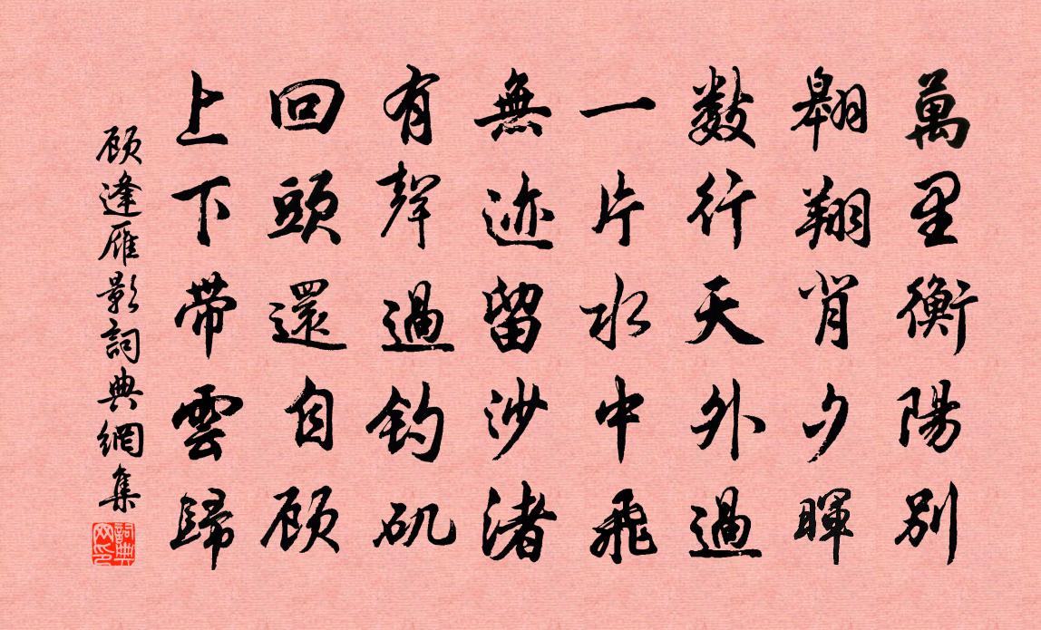 - 應難奈,故人天際,望徹淮山,相思無雁足。