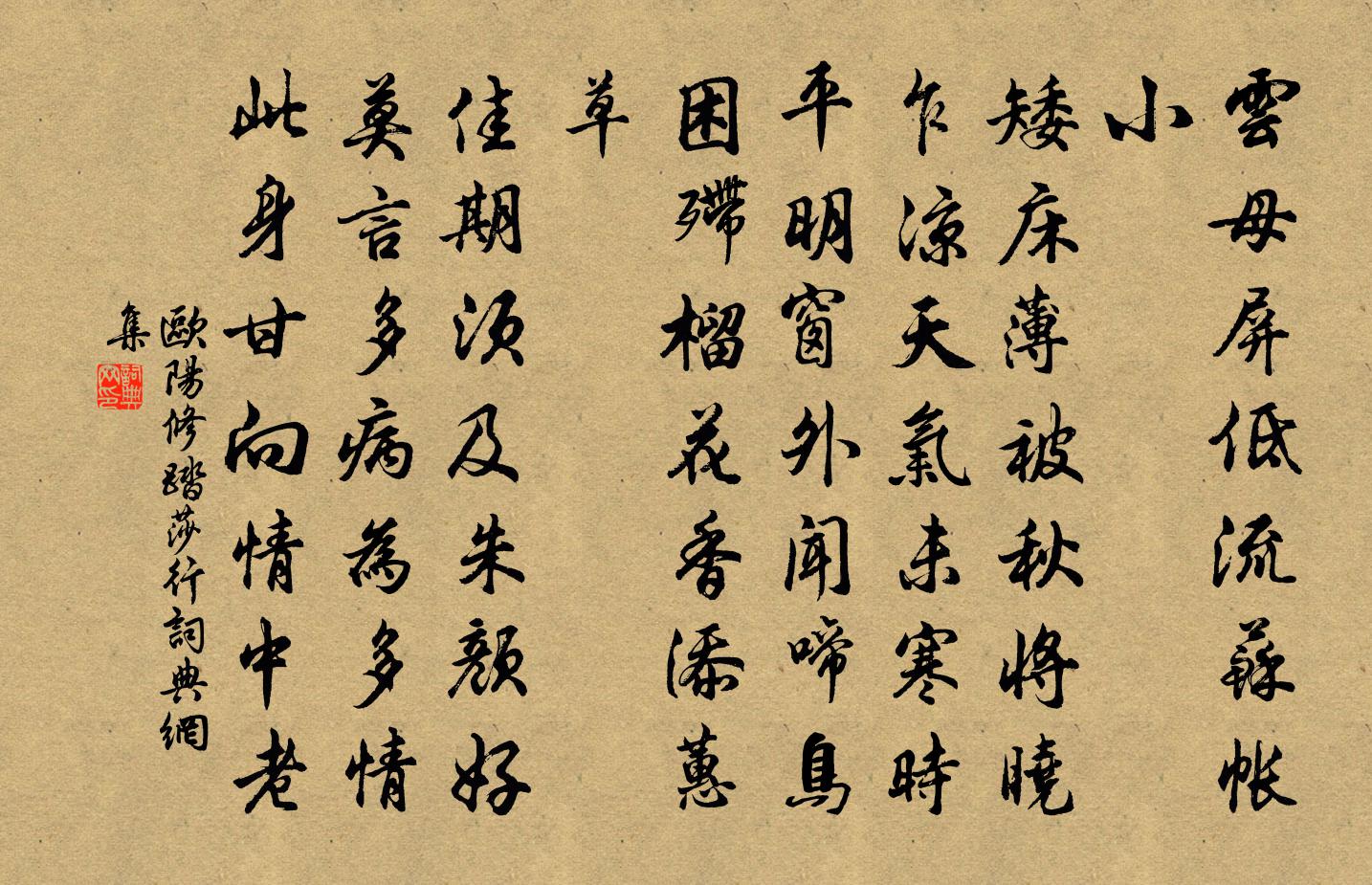 雲母屏低,流蘇帳小。矮床薄被秋將曉。