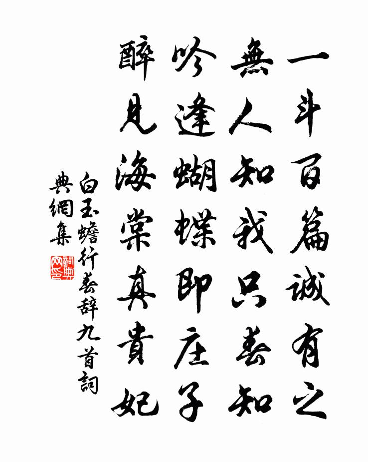 詩詞名句歷史字典書法欣賞書法字典國語詞典說文解字康熙字典古漢語字典標 題 作 者 詩 句 行春辭九首作者:白玉蟾 朝代:宋代行春辭九首原文一斗百篇誠有之,無人知我只春知。吟逢蝴蝶即莊子,醉見海棠真貴妃。詩詞問答問:行春辭九首的作者是誰?答:白玉蟾問:行春辭九首寫於哪個朝代?答:宋代問:行春辭九首是什麼體裁?答:七絕白玉蟾行春辭九首書法欣賞行春辭九首書法作品詩詞推薦和俟其按察詠縣學古梅舒岳祥〔宋代〕前身自是傅岩梅,持斧江南得得來。一笑見花同臭味,百妖潛影入莓苔。只將冷淡全超俗,肯向繁濃浪古魁。愛惜戲題仕女圖吳偉業〔清代〕霸越亡吳計已行,論功何物賞傾城?西施亦有弓藏懼,不獨鴟夷變姓名。 桃源行趙汝淳〔宋代〕武陵溪上栽桃花,兒童笑語成生涯。當初避地不知遠,漁郎驚問疑仙家。年深忘卻來時路,流水春風等閒度。龍翔雜詠五首王安石〔宋代〕小雨蕭蕭潤水亭,花風颭颭破浮萍。看花聽竹心無事,風竹聲中作醉醒。答王禹玉見贈歐陽修〔宋代〕昔時叨入武成宮,曾看揮毫氣吐虹。夢寐閒思十年舊,笑談今此一◇同。喜君新賜黃金帶,顧我宜為白髮翁。自古雪後赴徐氏燕集李處權〔宋代〕已雪猶陰更逆風,斜川略彴斷行蹤。瑤台貝闕三千丈,玉樹瓊林一萬重。學子經時無載酒,鄰僧過午未鳴鐘。華筵去郡三思方岳〔宋代〕我思老任棠,規我一本薤。薤本猶可鋤,而況此{左禾右夷}稗。拔之血人指,咄咄吁可怪。吾斯以為常,未敢以吳鉤行楊維楨〔元代〕吳人殺二子,畔成雙吳鉤。吳王食賞令,不識鉤中愁。臨鉤呼二子,飛來父心頭。百金何足報,萬戶當封侯。佩雙醉後狂言酬贈蕭、殷二協律白居易〔唐代〕餘杭邑客多羈貧,其間甚者蕭與殷:天寒身上猶衣葛,日高甑中未拂塵。江城山寺十一月,北風吹沙雪紛紛。賓客暑雨陸游〔宋代〕欲雨未雨雷車奔,欲睡不睡人思昏。蠻童正報煮茶熟,忽有野僧來叩門。過邵堯夫先生富弼〔宋代〕先生自衛客西畿,樂道安間絕世機。再命初筵終不起,獨甘窮巷寂無依。貫穿百代嘗探古,吟詠千篇亦造微。珍重惜黃花劉處玄〔元代〕眾生萬過。有天來大。覺世夢知空,莫爭人我。應變愛憎,無競無災禍。眼前事,頓明識破。敬道修因果。顛猿緊濂溪書院吊曾景建樂雷發〔宋代〕大極樓頭霽月寒,斷弦綠綺不堪彈。窗前自長濂溪草,澤畔還枯正則蘭。蒼野騷魂惟我吊,烏台詩案倩誰刊。傷心飲席代官妓贈兩從事李商隱〔唐代〕新人橋上著春衫,舊主江邊側帽檐。願得化為紅綬帶,許教雙鳳一時銜。減字木蘭花吳儆〔宋代〕少陵未老。曾把千人軍獨掃。發白眵昏。卻作天涯流落人。只堪合眼。夜直誰能潛入伴。斗酒西涼。何似卑棲且遠游僊陸游〔宋代〕飄飄鸞鶴杳難攀,萬里東遊海上山。應有世人遙稽首,紫簫余調落雲間。庚戌秋作陳起〔宋代〕甲辰迤邐至今年,藥灶殊勞日夕煎。血氣任他銷與鑠,向來詩骨已成仙。木蘭花慢胡祗遹〔元代〕百年湖海氣,得初效,處囊錐。更綠鬢朱顏,雄姿英發,光射征衣。大夫喜伸知己,感宸恩深重此身微。虎節才辭次朱元晦韻題嚴居厚溪莊圖陸游〔宋代〕鶴俸元知不療窮,葉舟還入亂雲中。溪莊直下鞦韆頃,贏取閒身伴釣翁。百字令 道宗 此下有金字經五首乃曲調,因刪王玠〔元代〕修真立鼎,鍊金丹、只用三般靈藥。冬至陽生忙下手,采至陽生忙下手,採取也須斟酌。抽坎填離,流精進火,正名句推薦多謝月相憐,今宵不忍圓。朱淑真《菩薩蠻·山亭水榭秋方半》 春宵一刻值千金,花有清香月有陰。蘇軾《春宵·春宵一刻值千金》 去年今日關山路,細雨梅花正斷魂。蘇軾《正月二十日往岐亭郡人潘古郭三人送余於女王城東禪莊院》 君子以思患而豫防之。佚名《易傳·象傳下·既濟》 姑蘇台上烏棲時,吳王宮裡醉西施。李白《烏棲曲》 故人入我夢,明我長相憶。杜甫《夢李白二首·其一》 知人者智,自知者明。勝人者有力,自勝者強。老子《老子·道經·第三十三章》 香臉半開嬌旖旎。當庭際。玉人浴出新妝洗。李清照《漁家傲·雪裡已知春信至》 上林苑裡花徒發,細柳營前葉漫新。杜審言《春日京中有懷》 搜句忌於顛倒,裁章貴於順序劉勰《文心雕龍·章句》
