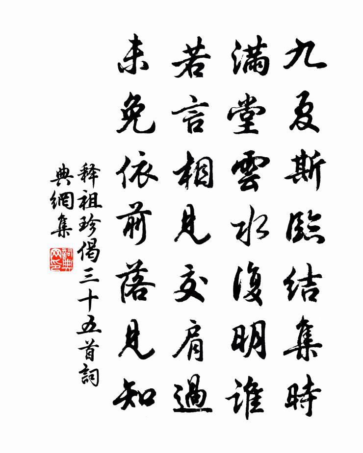 詩詞名句歷史字典書法欣賞書法字典國語詞典說文解字康熙字典古漢語字典標 題 作 者 詩 句 偈三十五首作者:釋祖珍 朝代:宋代偈三十五首原文九夏斯臨結集時,滿堂雲水復明誰。若言相見交肩過,未免依前落見知。詩詞問答問:偈三十五首的作者是誰?答:釋祖珍問:偈三十五首寫於哪個朝代?答:宋代釋祖珍偈三十五首書法欣賞偈三十五首書法作品詩詞推薦泛舟陸游〔宋代〕山照澄波發鬌青,新蒲梢上立蜻蜓。孤舟每為尋詩出,輸與漁翁醉不醒。蛾眉峰釋延壽〔宋代〕盤空勢險露岩根,深洞聲寒落石泉。好是雨餘江上見,水雲僧出認西天。句張耒〔宋代〕霜橙共我鄉。宿杜氏莊晨起遇雨陸游〔宋代〕怪藤十圍蔽白日,老木千尺乾青霄。水泛戛灘竹作舫,陸行跨空繩系橋。陰陰古屋精靈語,慘慘江雲蛟鱷驕。吾道南鄉子方千里〔宋代〕西北有高樓。淡靄殘煙漸漸收。幾陣涼風生客袖,颼颼。心逐年華袞袞流。花卉滿前頭。老懶心情萬事休。獨倚欄警幻仙姑賦曹雪芹〔清代〕方離柳塢,乍出花房。但行處,鳥驚庭樹;將到時,影度迴廊。仙袂乍飄兮,聞麝蘭之馥郁;荷衣欲動兮,聽環佩秋園謾賦呈方叔姜特立〔宋代〕嫋嫋鮮飈動遠林,亭亭靄居占遙岑。淵明松菊秋容澹,仲蔚蓬蒿露氣深。莫笑四攜亭未濉,且環十鼓坐同斟。更須紹興以後祀五方帝六十首佚名〔宋代〕[圜鍾為宮]離明御正,德協於火。有感其生,維帝是何。帝圖炎炎,貽福錫我。鑒於妥虔,高靈下墮。銅壺閣望月陸游〔宋代〕銅壺閣上看明月,身在千尋白銀闕。十年肺渴今夕平,皓然胸次堆冰雪。恨無僊掌出雲表,更取墜露和玉屑。夜闌蠶婦嘆舒邦佐〔宋代〕舍南舍北爭採桑,欲老未老蠶滿筐。曉切葉縷細且長,夜夢繭簇白間黃。繰成萬絲手中香,醫得三月眼前瘡。有餘訪奭公宿和其韻徐照〔宋代〕枯株圍古寺,長覺夜寒增。坐聽風吹雪,吟移佛照燈。灰沉麟骨碎,茶沸蟹涎凝。何計從師老,生涯若履冰。忠獻韓公輓辭二首王安石〔宋代〕兩朝身與國安危,曲策哀榮此一時。木稼嘗聞達官怕,山頹果見哲人萎。英姿爽氣歸圖畫,茂德元勛在鼎彝。幕府和聖俞農具詩十五首其十一錢鎛王安石〔宋代〕於易見耒耜,於詩聞錢鎛。百工聖人為,此最功不薄。欲收禾黍善,先去蒿萊惡。願同欹器悟,更使臣工作。春恨韓偓〔唐代〕殘夢依依酒力余,城頭畫角伴啼烏。平明未卷西樓幕,院靜時聞響轆轤。梁三朝雅樂歌 需雅 七沈約〔南北朝〕備味斯饗惟至聖。鹹降人神禮為盛。或風或雅流歌詠。負鼎言歸啟殷命。悠悠四海同茲慶。寄上鄭郎中姜夔〔宋代〕梅根東望九會雲,中有風流衣鄉人。名下一生勞夢想,尊前數語倍情親。節旄在道催歸漢,花鳥留君且作春。見說投岳侯毛國英〔宋代〕鐵鎖沈沈截碧江,風旗獵獵駐危檣。禹門縱使高千尺,放過蛟龍也不妨。龜山季履道〔宋代〕濁酒三秋館,青燈半夜花。故人渾在目,幽夢暫還家。淮近風偏惡,山高月易斜。新霜何處雁,片影落平沙。與夏侯繹張唐民游蜀岡大明寺梅堯臣〔宋代〕秋葉已多蠹,古原看更荒。廢城無馬入,破冢有孤藏。寒日稍清迥,寒山分漭蒼。田衣指白水,此下是雷塘。送劉道士之山陰閱藏書四首章甫〔宋代〕破屋頻來叩戶,殘尊俄惜離群。揮翰他時說我,圍棋暇日思君。名句推薦長江萬里東注,曉吹卷驚濤。吳潛《水調歌頭·焦山》 日落君山雲氣,春到沅湘草木,遠思渺難收。張孝祥《水調歌頭·過岳陽樓作》 漸秋闌、雪清玉瘦,向人無限依依。李清照《多麗·詠白菊》 問君何能爾?心遠地自偏。陶淵明《飲酒·其五》 花影不離身左右,鳥聲只在耳東西。曹雪芹《紅樓夢·第二十八回》 雨中山果落,燈下草蟲鳴。王維《秋夜獨坐 / 冬夜書懷》 古戍三秋雁,高台萬木風。屈大均《魯連台》 禍患常積於忽微,而智勇多困於所溺歐陽修《伶官傳序》 己所不欲,勿施於人。孔子弟子《論語·顏淵篇》 大漠沙如雪,燕山月似鉤。李賀《馬詩二十三首·其五》
