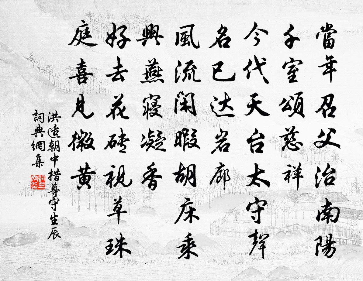 詩詞名句歷史字典書法欣賞書法字典國語詞典說文解字康熙字典古漢語字典標 題 作 者 詩 句 朝中措(尊守生辰)作者:洪适 朝代:宋代朝中措(尊守生辰)原文當年召父治南陽。千室頌慈祥。今代天台太守,聲名已達岩廊。風流閒暇,胡床乘興,燕寢凝香。好去花磚視草,珠庭喜見微黃。詩詞問答問:朝中措(尊守生辰)的作者是誰?答:洪适問:朝中措(尊守生辰)寫於哪個朝代?答:宋代問:朝中措(尊守生辰)是什麼體裁?答:詞洪适朝中措(尊守生辰)書法欣賞朝中措(尊守生辰)書法作品詩詞推薦柴秘書分符章貢同舍餞別用蔡君謨世閒萬事皆崔與之〔宋代〕玉立蓬山巔,聲望高一世。清秋玉壺露,耿耿無織翳,中流屹砥柱,愈激而愈厲。平生學古胸,非為次身計。中邊題寒碧亭郭印〔宋代〕炯炯練千尺,蒼蒼玉萬個。客來魂一清,四顧不敢唾。秋日遣興孫應時〔宋代〕今年炎毒異他年,及此秋風意洒然。身世還須幾寒暑,吾生何事不隨緣。送鏡空上人游江南方乾〔唐代〕去住如雲鶴,飄然不可留。何山逢後夏,一食在孤舟。細雨蓮塘晚,疏蟬橘岸秋。應懷舊溪月,夜過石窗流。奉和始平公憶東平司馬光〔宋代〕相印東臨汶水陽,兩看春葉與秋霜。登山置酒延鄒湛,上馬回鞭問葛強。溪竹低垂寒滴翠,露荷相倚淨交香。宵衣虎丘篇楊維楨〔元代〕路出女墳湖,警蹕霸王驅。靈池飛霹靂,枯冢走於菟。老禪猶點石,仙鬼只疑狐。祖龍來發閟,銀海又飛鳧。減字木蘭花蘇軾〔宋代〕空床響琢。花上春禽冰上雹。醉夢尊前。驚起湖風入坐寒。轉關鑊索。春水流弦霜入撥。月墮更闌。更請宮高奏獨因送客過六叔趙蕃〔宋代〕荷衣綠破碎,稻實亂撐拄。秋悲空多風,雲重乃不雨。黃花已成昨,白酒真漫舉。小作談笑期,暫紓追送苦。趙使君淮春樓落成二首陳造〔宋代〕五鳳規橅到眼中,摘星奇觀欲爭雄。客乘雲氣游三島,人聽歌聲指半空。便擬瑤杯酌銀漢,何妨醉面受天風。胡床偈頌一百三十六首釋惟一〔宋代〕三玄三,五位君臣。說偏說正,分主分賓。未免重添眼裡塵。盡情劃斷,空闊無垠。孤鴻杳杳知何處,門外蕭蕭落簡周宗聖張弋〔宋代〕曠野有芳芷,近江無早鶯。春詩定多少,旬日又清明。樹暗憐楊柳,花開認橘橙。相尋每乖阻,夢裡亦愁生。夏晝俞桂〔宋代〕輕搖羽扇著輕紗,閒汲清泉自煮茶。緣是夏來無甚雨,小池猶未有荷花。書報先生壁宋自遜〔宋代〕一盞清燈到夜深,掩書趺坐學禪心。山猿白日無蹤跡,夜夜來啼松樹林。禪人求贊四首釋宗杲〔宋代〕上無片瓦蓋頭,下無舊錐之地。赤骨{左骨右歷}個渾身,與人爭甚閒氣。些子無明奈何,說甚祖師西來意。贈月心方逢辰〔宋代〕蒼苔破屋生涯足,淡飯清湯夢寐安。認得秀才窮快活,何須煩惱做軍官。頌古五十七首釋道昌〔宋代〕趙州石橋,只見略彴。度驢度馬,應病與藥。換步移身,在富分貧。當頭如認著,東魯問西秦。雜興張鎡〔宋代〕河南牧羊兒,不識奇字書。君王事邊頭,無亦官帑虛。慨然分家資,補國何勤渠。詎有忠於君,而謂不學歟。毋令奉和東宮經故妃舊殿詩江總〔隋代〕故殿看看冷。空階步步悲。猶憶窺窗處。還如解佩時。苔生無意早。燕入有言遲。若令歸就月。照見不須疑。九月二十二日晚秋曲宴宋孝宗〔宋代〕昊穹垂佑福群生,涼德惟知監守成。禾黍三登占葉氣,簫韶九奏播歡聲。未央秋晚林塘靜,太液波閒殿閣明。嘉與行見月王建〔唐代〕月初生,居人見月一月行。行行一年十二月,強半馬上看盈缺。百年歡樂能幾何,在家見少行見多。不緣衣食相驅名句推薦又是過重陽,台榭登臨處,茱萸香墜。李煜《謝新恩·冉冉秋光留不住》 福在積善,禍在積惡。黃石公《素書·安禮》 眼孔淺時無大量,心田偏處有奸謀。馮夢龍《醒世恆言·卷一》 地冷葉先盡,谷寒雲不行。李白《冬日歸舊山》 父老得書知我在,小軒臨水為君開。蘇軾《送賈訥倅眉》 梨花淡白柳深青,柳絮飛時花滿城。蘇軾《東欄梨花》 紅樹青山日欲斜,長郊草色綠無涯。歐陽修《豐樂亭遊春·其三》 黃河落天走東海,萬里寫入胸懷間。李白《贈裴十四》 烽火連三月,家書抵萬金。杜甫《春望》 善政得民財,善教得民心。孟子《孟子·盡心章句上·第十四節》