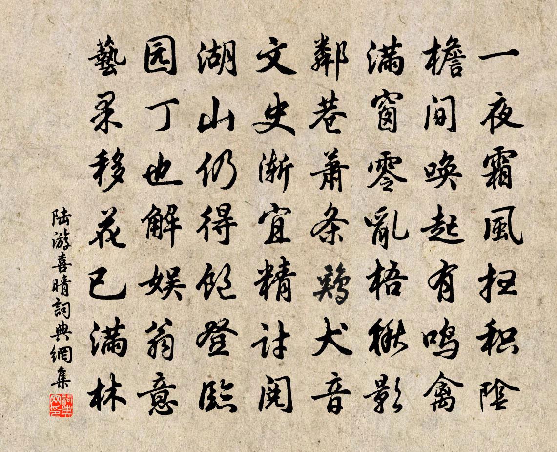 一夜霜風掃積陰,檐間喚起有鳴禽。滿窗零亂梧楸影,鄰巷蕭條雞犬音。