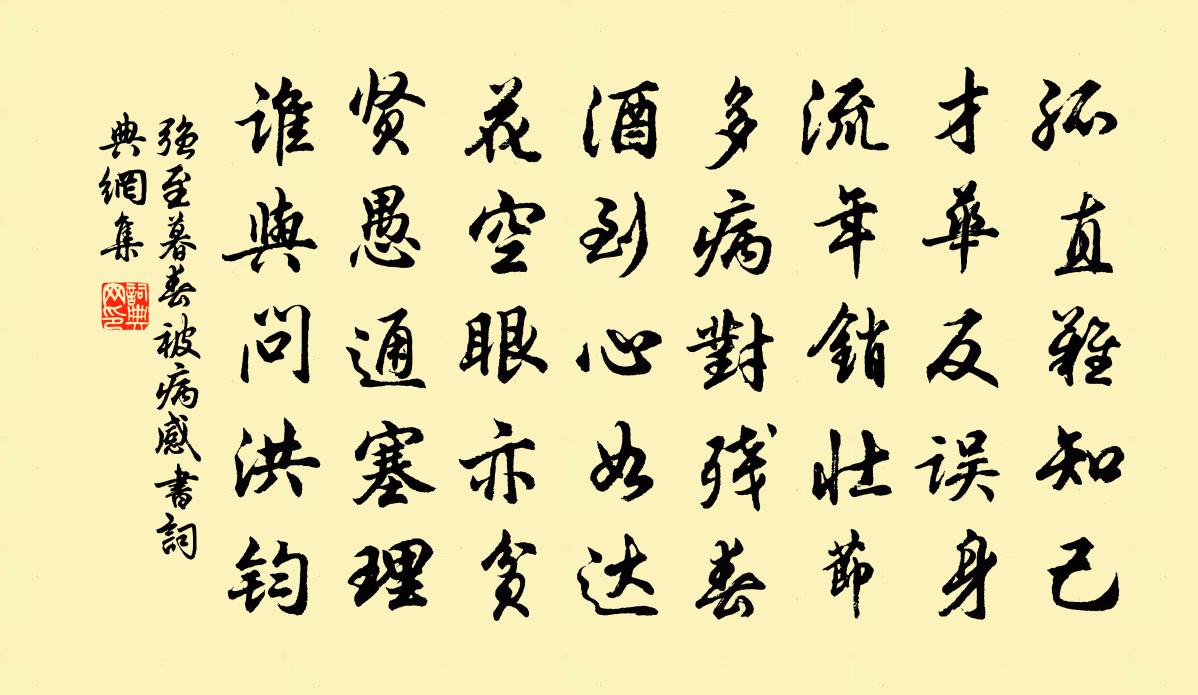 詩詞名句歷史字典書法欣賞書法字典國語詞典說文解字康熙字典古漢語字典標 題 作 者 詩 句 暮春被病感書作者:強至 朝代:宋代暮春被病感書原文孤直難知己,才華反誤身。流年銷壯節,多病對殘春。酒到心如達,花空眼亦貧。賢愚通塞理,誰與問洪鈞。詩詞問答問:暮春被病感書的作者是誰?答:強至問:暮春被病感書寫於哪個朝代?答:宋代強至暮春被病感書書法欣賞暮春被病感書書法作品詩詞推薦還自錢塘道中潘檉〔宋代〕江上青山落照邊,江頭歸客木蘭船。春鷗自共潮回去,一點飛來是柳綿。南雪胡仲弓〔宋代〕半生道路困風沙,冰雪駸駸到海涯。鋤卻舊時桃與李,滿園多種木綿花。春夕宋庠〔宋代〕暝色蔽孤齋,空軒向夕開。花低應露下,月暗覺雲來。燭牖輕蛾聚,風枝倦鳥猜。無言聊隱几,萬境一靈台。贈朱野拙許月卿六〔宋代〕官樣何如野,謀生拙最宜。君門標野拙,篆刻大精奇。好事近(黃義卿畫帶霜竹)高登〔宋代〕瀟灑帶霜枝,獨向歲寒時節。觸目千林憔悴,更幽姿清絕。多才應賦得天真,落筆驚風葉。從此綠窗深處,有一梢寄陳用晦四首陳造〔宋代〕詩翁磊塊胸,大邑佳麗地。瓊也領蝤蠐,懿也目秋水。清歌酹碧筒,粗足令公喜。醉呼翩欲仙,誰要卿料理。問大冶長老乞桃花茶栽東坡蘇軾〔宋代〕周詩記苦荼,茗飲出近世。初緣厭粱肉,假此雪昏滯。嗟我五畝園,桑麥苦蒙翳。不令寸地閒,更乞茶子蓺。饑寒題三學山王雍〔宋代〕五色琉璃白畫寒,當年佛腳印旃檀。藕絲織出三衣妙,貝葉經傳一偈難。夜看聖燈紅菡萏,曉驚飛石碧琅玕。更聞送張交代琮趙蕃〔宋代〕歷數旴江士,推君父子間。夷途有霄漢,蹇步乃荊蠻。薦牘方爭上,交情勿重攀。無緣更州縣,小試亦編刪。早梅李公明〔宋代〕東風才了又西風,群木山中葉葉空。只有梅花吹不盡,依然新白抱新紅。又以堰事滯留姜主簿學父載酒相勞於離堆新繁程公許〔宋代〕穿江慨奉守,瞻岷懷子長。成書著不刊,明德益難忘。千載志尚友,百進而職勸相。每負伐檀恥,欲期盡心償。籠和錢處和大資四首曹勛〔宋代〕迷雲公已性天開,雙澗相逢若再來。二老果能如洛下,固宜慧遠賦優哉。惜黃花王哲〔元代〕大仙師父。常來救苦。且作凡間人、說些宗祖。地下一聲雷,震動山頭雨。怎知道、鐵牛耕土。坎離並子午。擒龍贈別歐陽全真三首趙蕃〔宋代〕往者贛州牧,與君鄉里儒。身俱上黃閣,官或伏青蒲。薦口寧虛啟,才名不可誣。下僚如處士,鯁論亦時須。挽大資節使史國公三首李曾伯〔宋代〕早袖經綸手,傳之柱石材。無心到孤棘,有德付三槐。五鼎方身饗,兩楹俄夢回。百年流澤遠,袞袞幾公台。秋懷寄陳宗之黃簡〔宋代〕秋聲四壁動,寒事日駸駸。紅剝林閒子,青除架底陰。積閒殊有味,安拙本無心。獨愧陳徵士,賒書不問金。六月十七日十八日大雨聞賊欲降方回〔宋代〕誰遣青天變漏天,人閒無復有平田。女媧鏈石端何物,子產禜龍未必然。死徒銜冤終不雪,生存忍餓更堪憐。腐儒瑞鷓鴣彭元遜〔宋代〕 * 遊伴寄蘭苕。人日晴時不用招。微雨來看楊柳色,故人相遇浴龍橋。愁如春水年年長, * 東風日日消。幾欲清平樂佚名〔宋代〕繁弦急管。喜色門闌滿。應是雀屏曾中選。新近東床禁臠。功名有分非難。休因女婿求官。幸與嫦娥為伴,直須仙張徐州席送岑秀才孟郊〔唐代〕振振芝蘭步,升自君子堂。泠泠松桂吟,生自楚客腸。羈鳥無定棲,驚蓬在他鄉。去茲門館閒,即彼道路長。雨餘名句推薦落地為兄弟,何必骨肉親!陶淵明《雜詩》 芳樹籠秦棧,春流繞蜀城。李白《送友人入蜀》 三春已暮花從風,空留可憐與誰同。蕭衍《東飛伯勞歌》 臨砌影,寒香亂、凍梅藏韻。吳文英《花犯·郭希道送水仙索賦》 溫故,而知新,敦厚以崇禮。子思《中庸·第二十七章》 上智不教而成,下愚雖教無益,中庸之人,不教不知也。顏之推《顏氏家訓·教子篇》 敗軍之將,不可以言勇。司馬遷《史記·淮陰侯列傳》 外亂而內整,示飢而實飽,內精而外鈍。姜子牙《六韜·文韜·兵道》 秋晚佳晨重物華,高台復帳駐鳴笳。宋祁《九日置酒》 惜別浮橋駐馬時,舉頭試望南山嶺。李頎《少室雪晴送王寧》