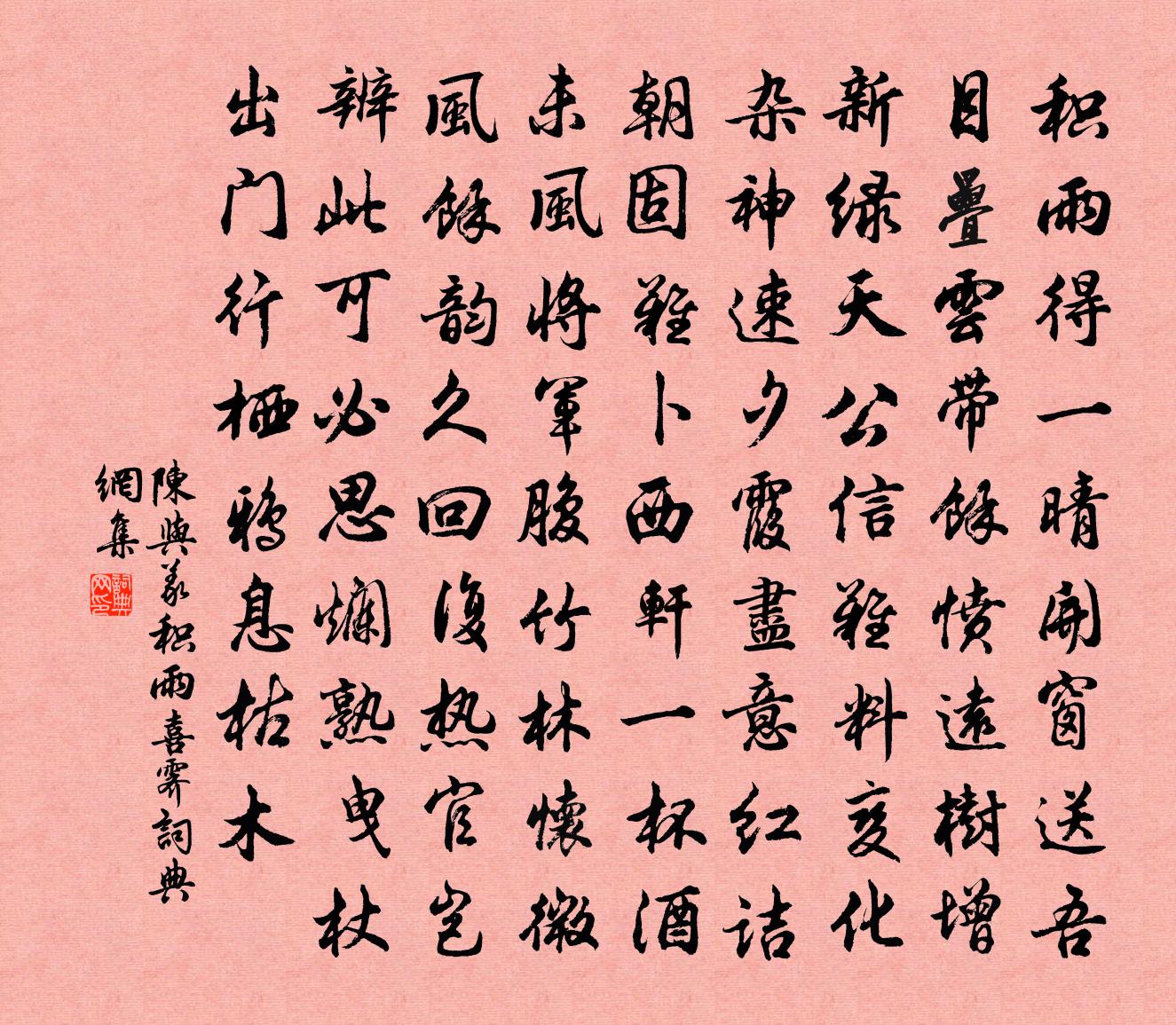 積雨得一晴,開窗送吾目。疊雲帶餘憤,遠樹增新綠。