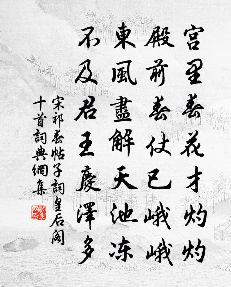 宮裡春花才灼灼,殿前春仗已峨峨。東風盡解天池凍,不及君王慶澤多。