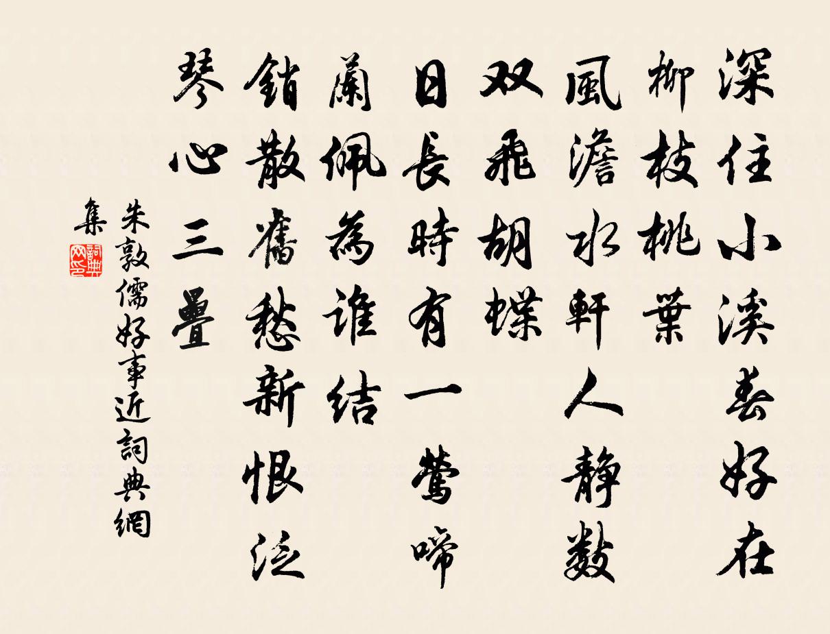 深住小溪春,好在柳枝桃葉。風澹水軒人靜,數雙飛胡蝶。